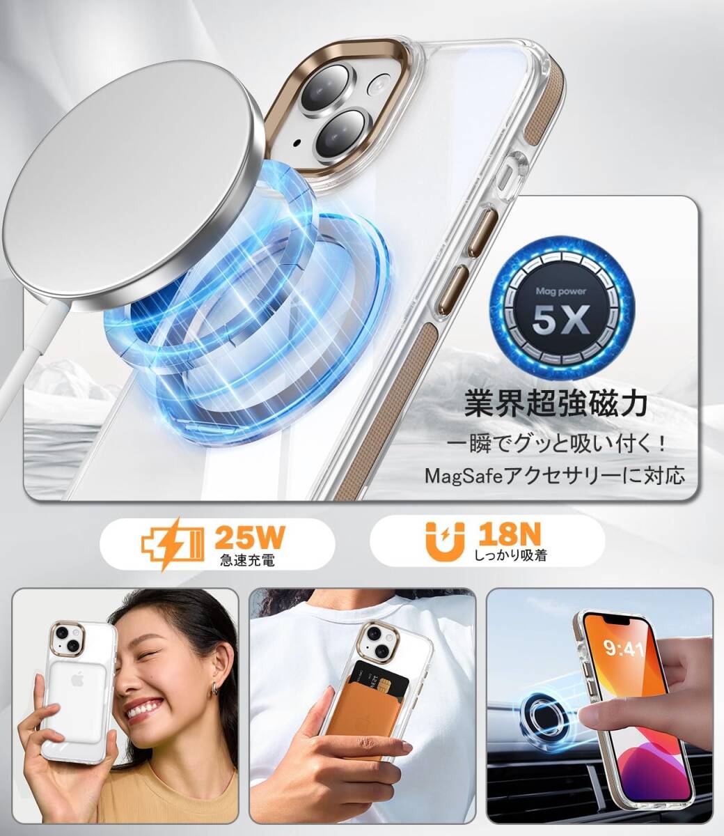 • 『超磁力! MagSafe完全対応』超強力ネオジム磁石がMagSafeを完全捕捉! 瞬時に『カチッ』と磁気吸着、MagsafeアクセサリーとQIワイヤレス充電器と完璧に対応し。アップグレードされたマグネットリングは驚異的な磁気吸着力を実現し、揺れや衝撃を受けても外れないだけでなく、高速充電が可能です。