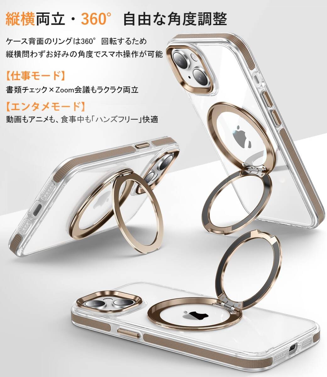 iPhone 13 / iPhone 14 用 ケース 多機能360度回転スタンド 縦横両用 マグネット搭載 MagSafe対応 滑り止めドット模様