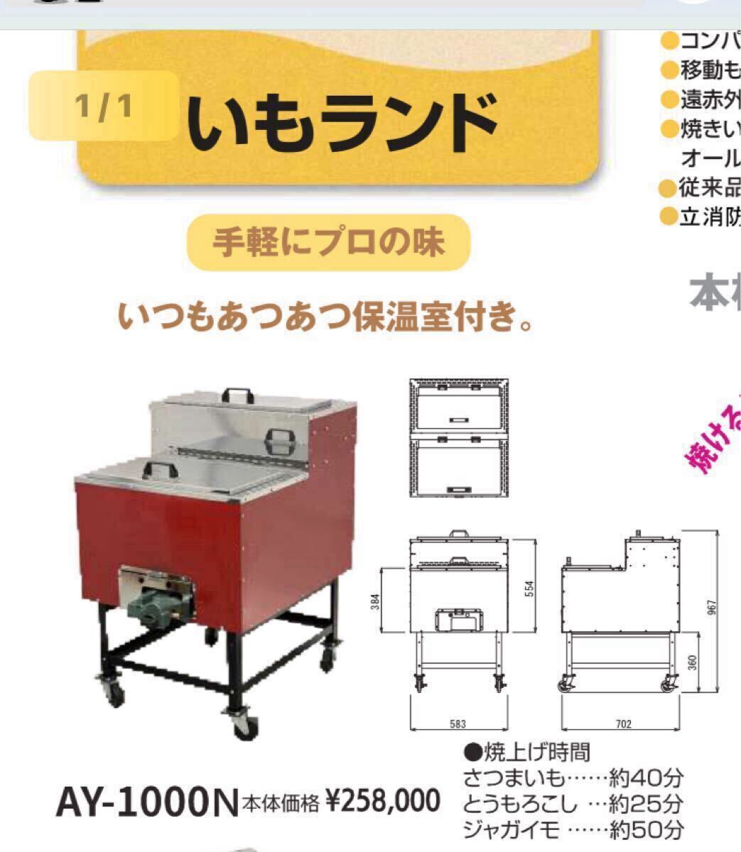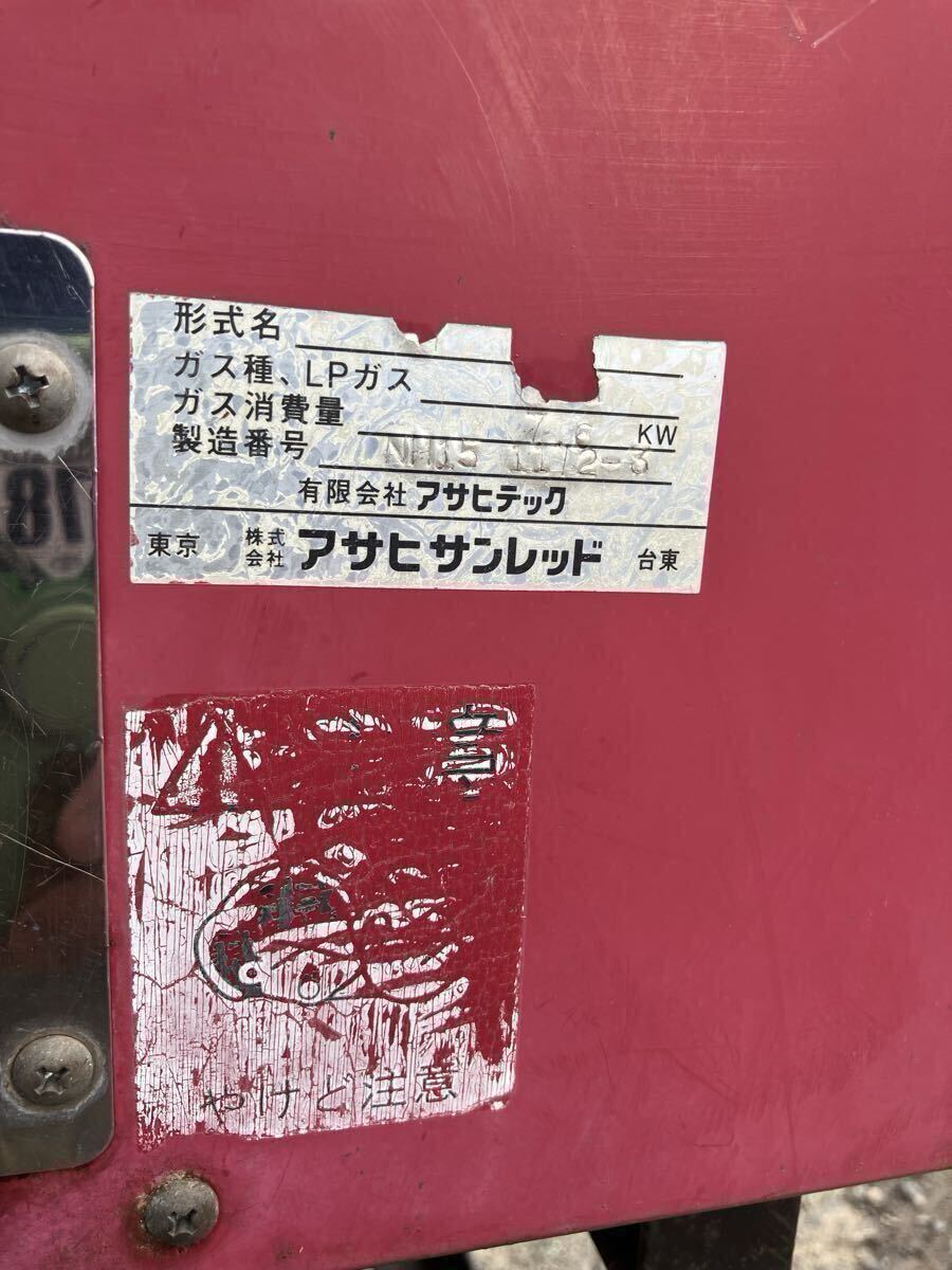 アサヒサンレッド 石焼き芋機 LPガス仕様 火口のコンロがありませんので、ジャンク扱い、引取限定です。