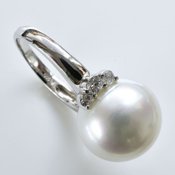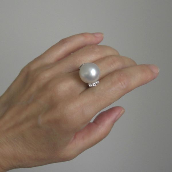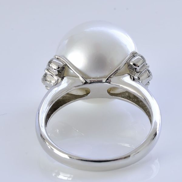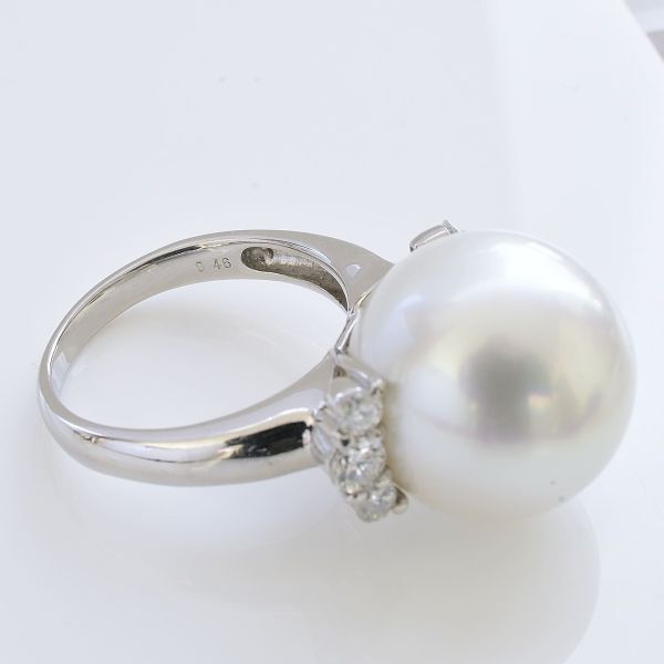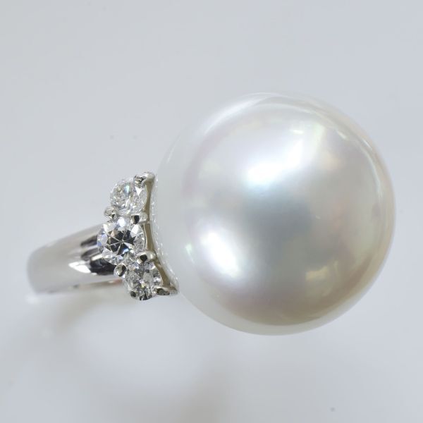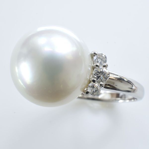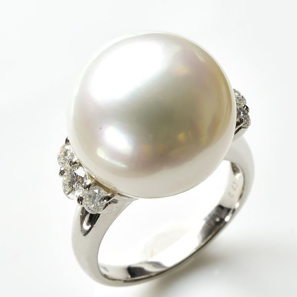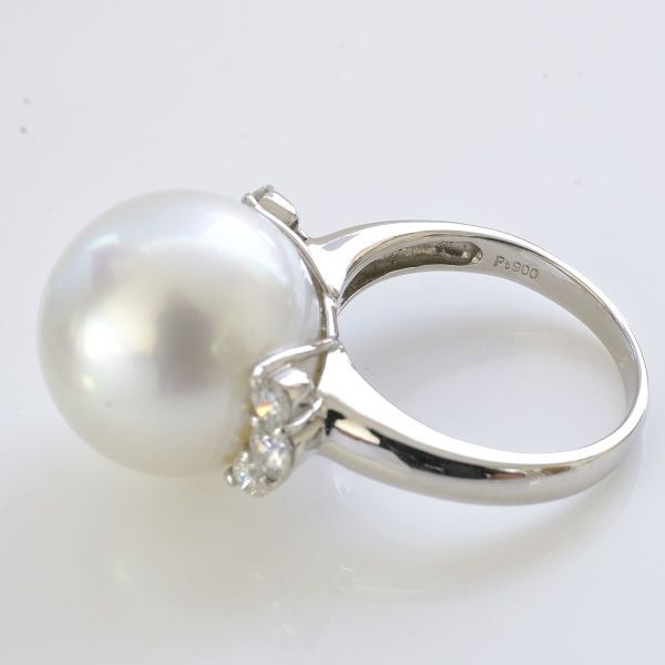 ★ 華やかな艶の美しいリング ★ この南洋真珠の特徴は、真珠層の巻きが厚くテリ(輝き)が美しいこと、 そして何よりも大粒で色合いと艶が高品質です 厚い真珠層による深い輝きと上品な色合いのホワイトにピンク「Pinkish white」が映える 美しいカラーを持つボリュームあふれる明るい真珠です (光と影によりピンクの濃さにも差が出ます) 艶やかな独特の光沢 約14.9mm の迫力の真珠 両脇の3石のダイヤモンドは無色透明 中央のダイヤのカットが片方は58面より少なく、もう片方は58面より多いダイヤで綺麗な輝き 楽しく手の込んだ配置で豪華な仕上がりです Pt900 046 の刻印があります ※この商品は新品ではありません 仕上げ済です ※南洋真珠の形成過程で発生したくぼみがありますが美しさや耐久性に影響するものではありません ※ 過度に力が加わるとキズや石落ち、石欠け、リングの変形などの原因となりますのでご注意ください -----◇-----◇-----◇-----◇-----◇-----◇-----