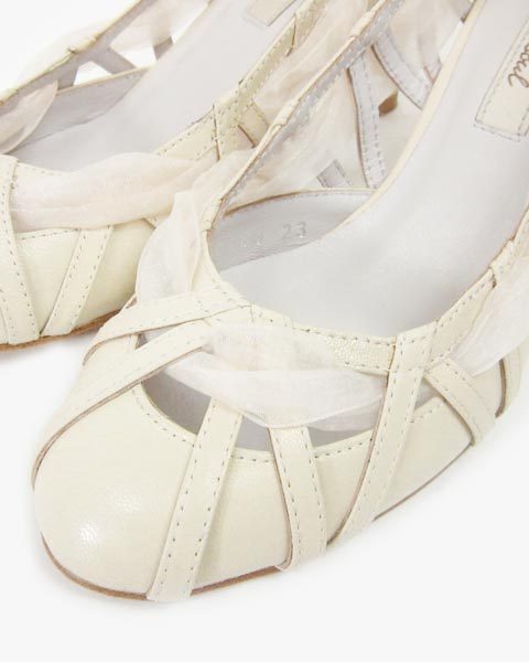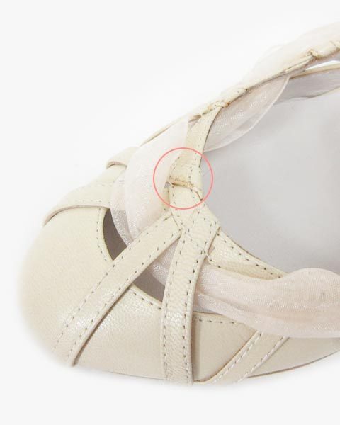 シフォンリボン編み上げパンプス☆取り外し可能なリボンですので、2WAYでお使い頂けます。アーモンドトゥで女性らしい足元に♪ |