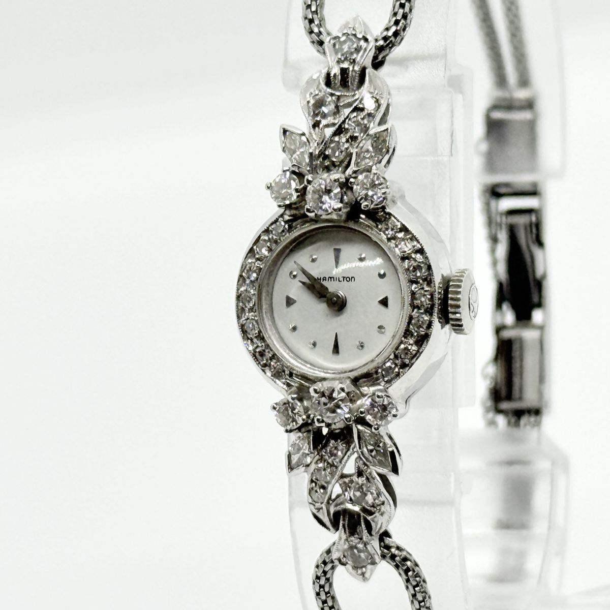 K8196 HAMILTON ハミルトン ヴィンテージウォッチ アンティーク 白文字盤 K14 WG 手巻き 14.2g 稼働品 腕時計