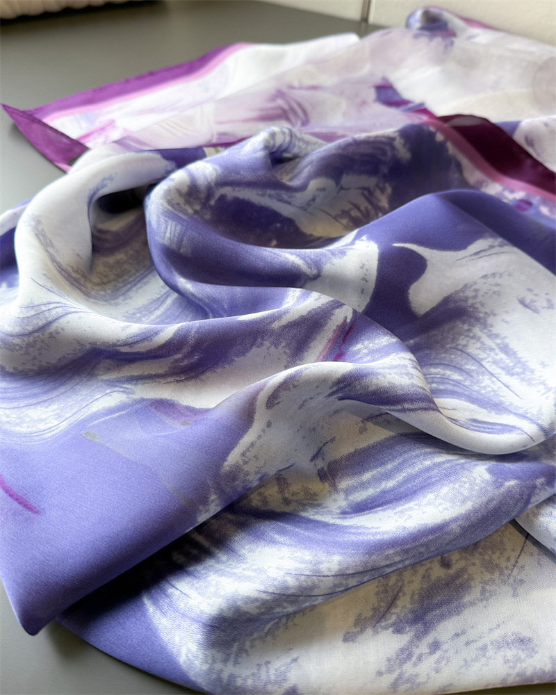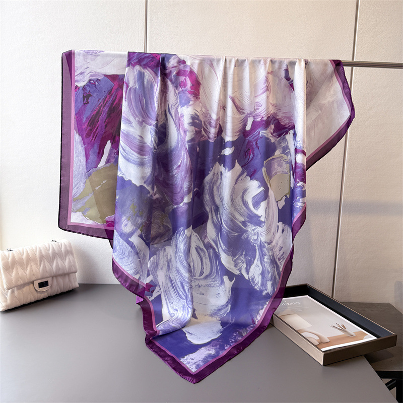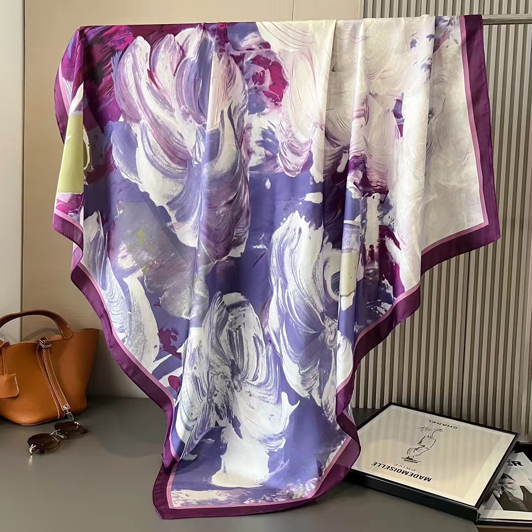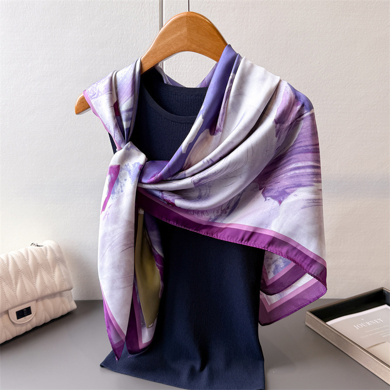 【Z-78】新品レディースショール正方形110cm シルク調 ショール 日焼け 冷房対策 ストール 紫色