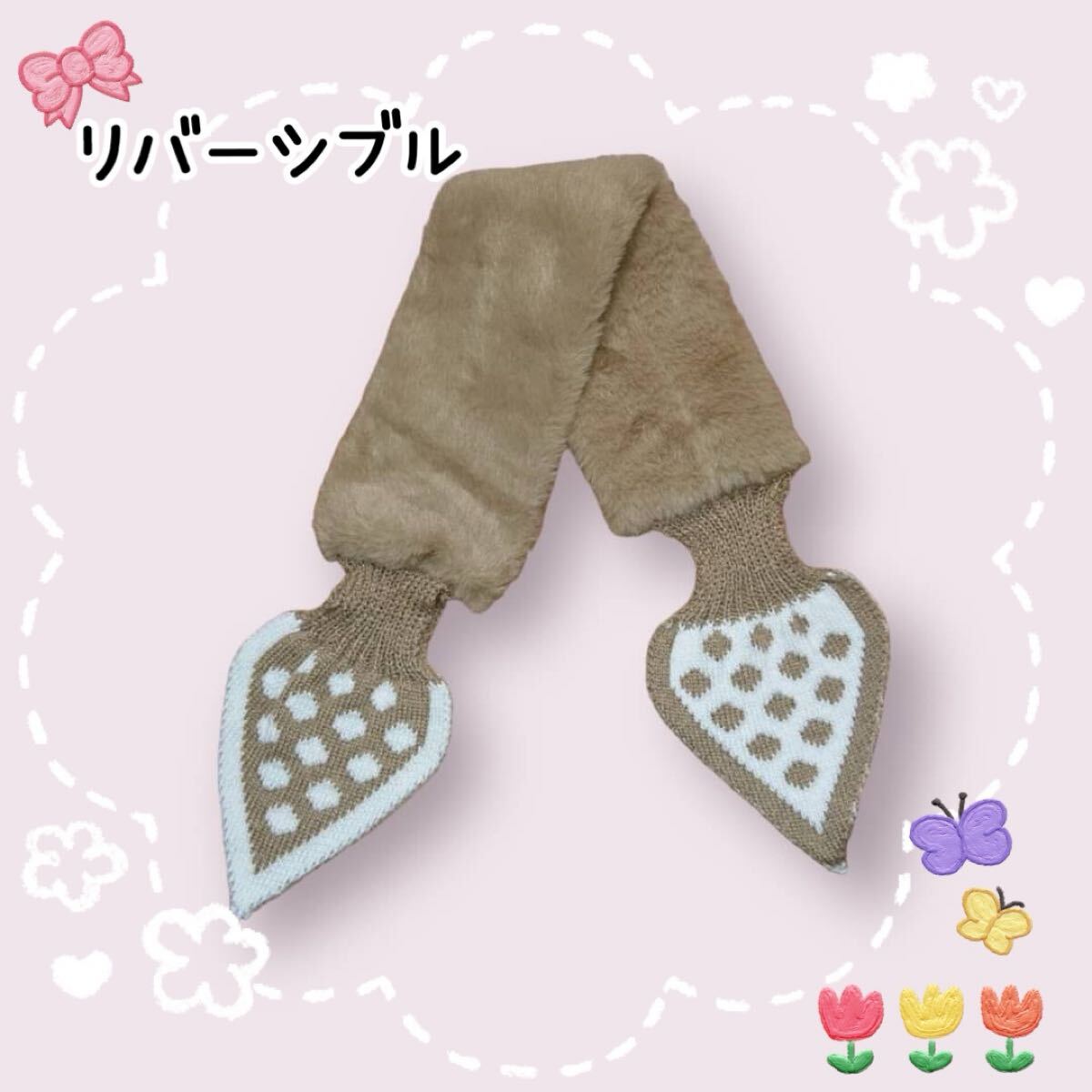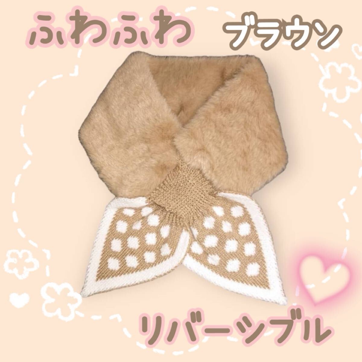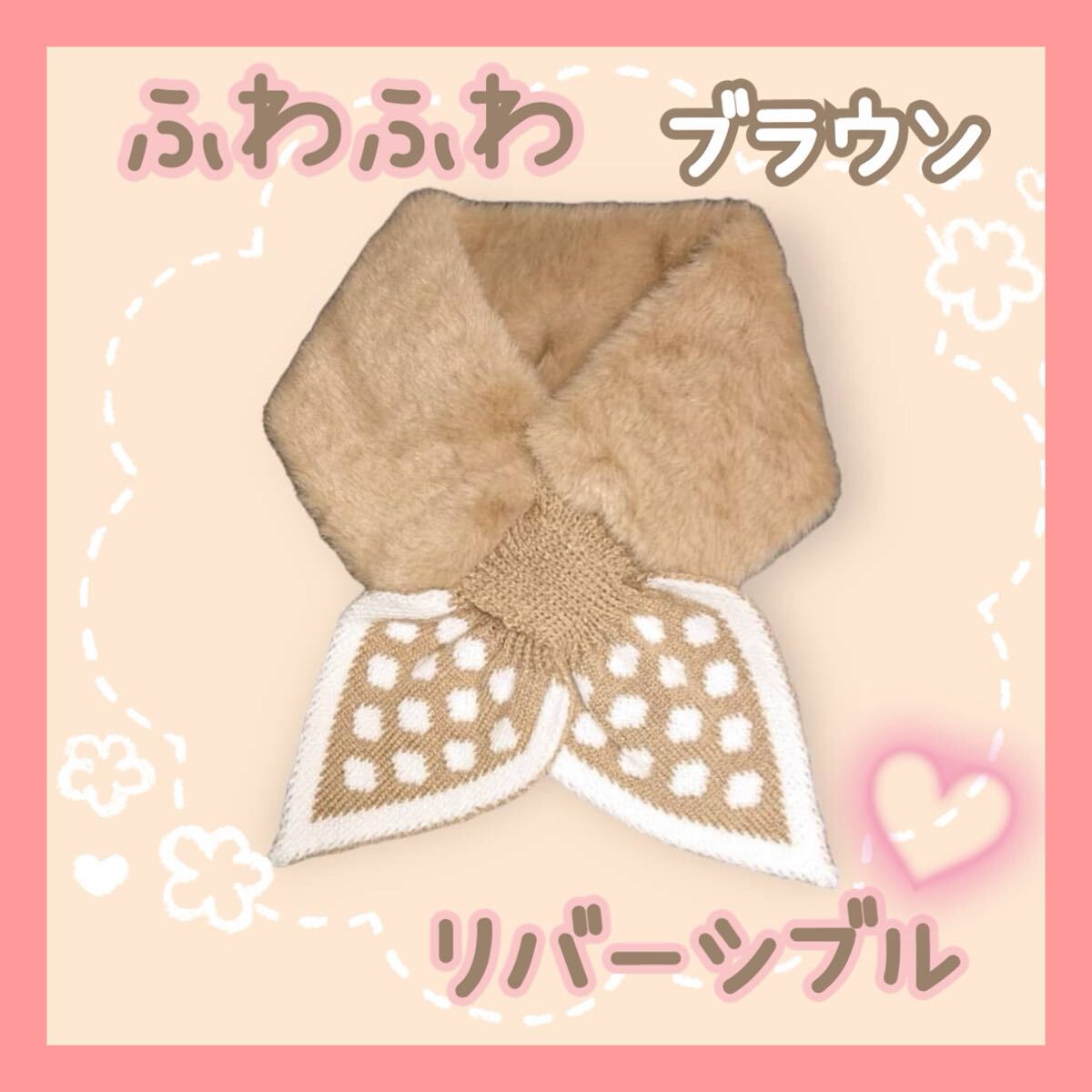 ファーマフラー ファーティペット キッズ 防寒 ブラウン  ファー マフラー リバーシブル ふわふわ ニット 暖か 子供 水玉