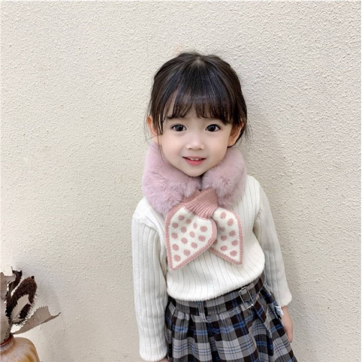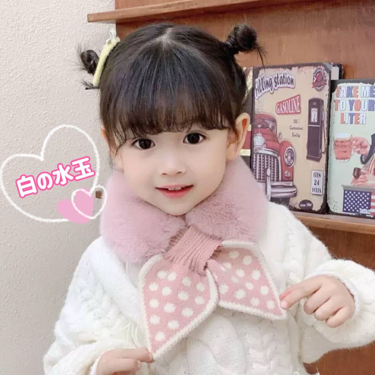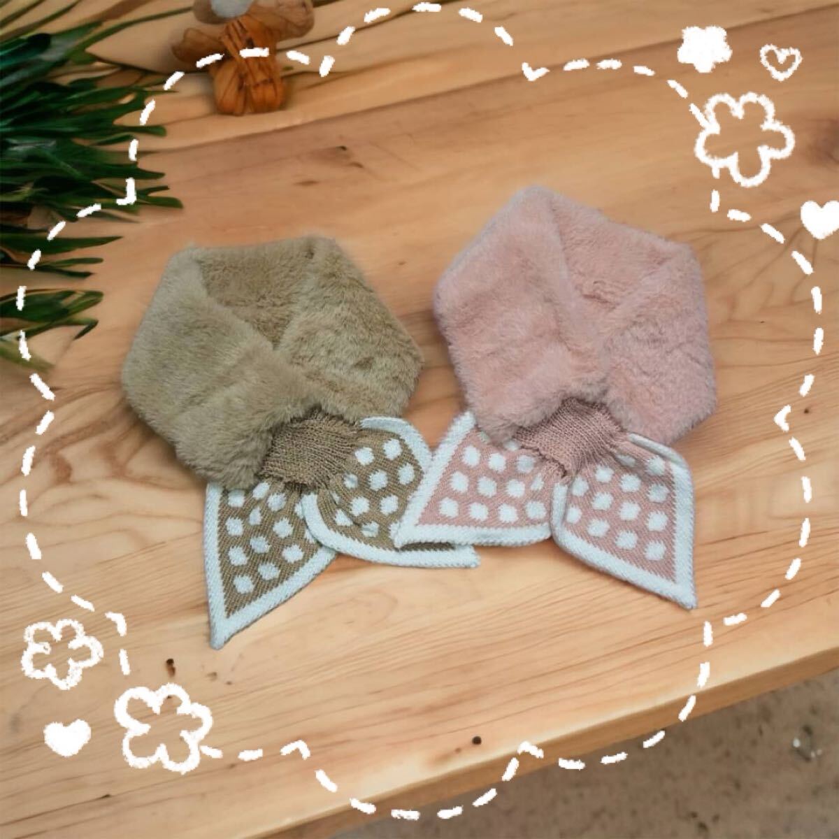 ファーマフラー ファーティペット キッズ 防寒 ブラウン  ファー マフラー リバーシブル ふわふわ ニット 暖か 子供 水玉