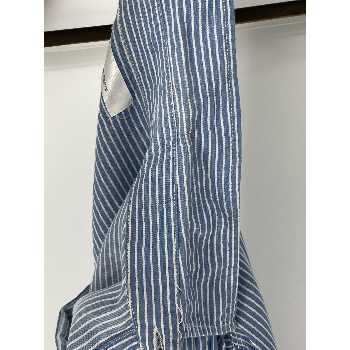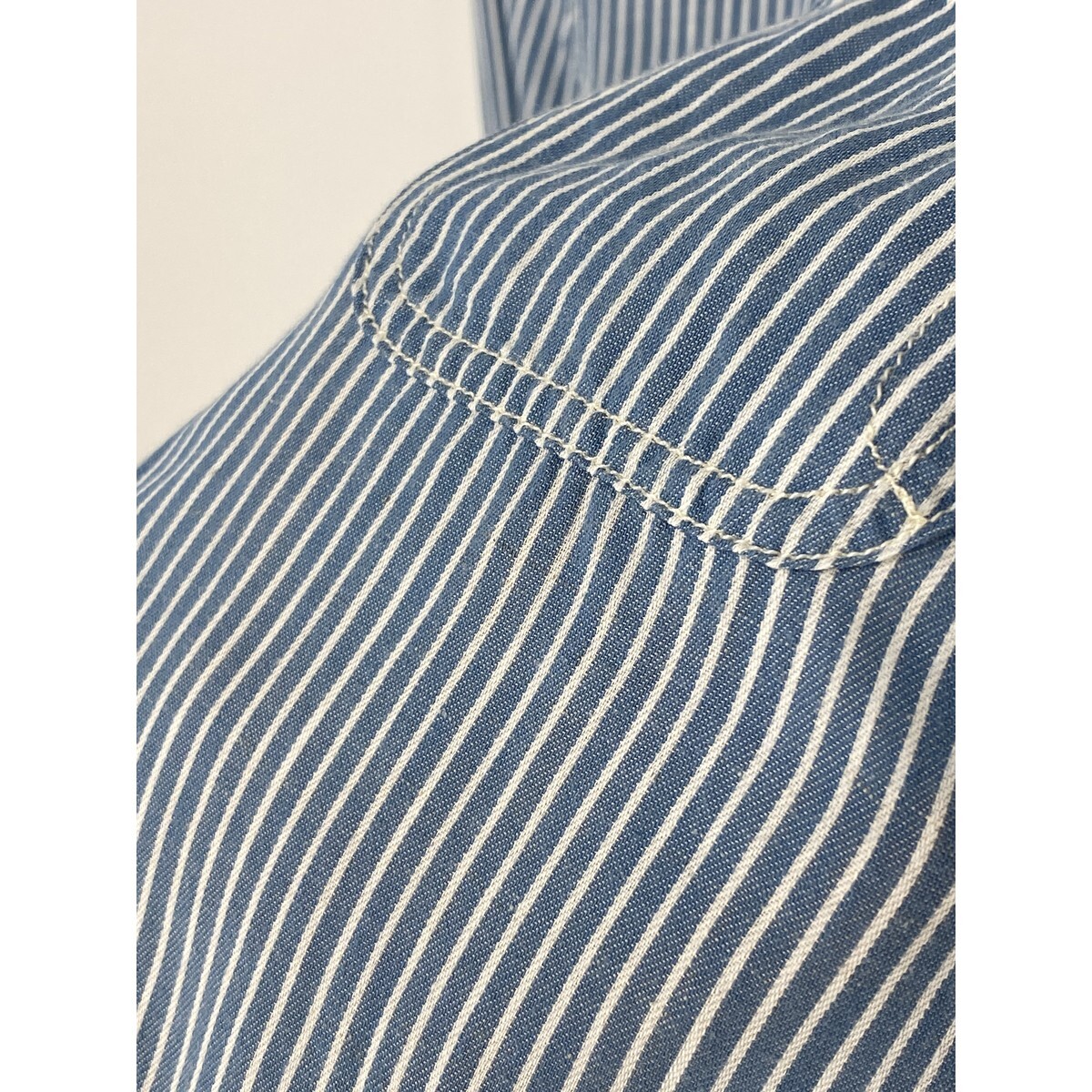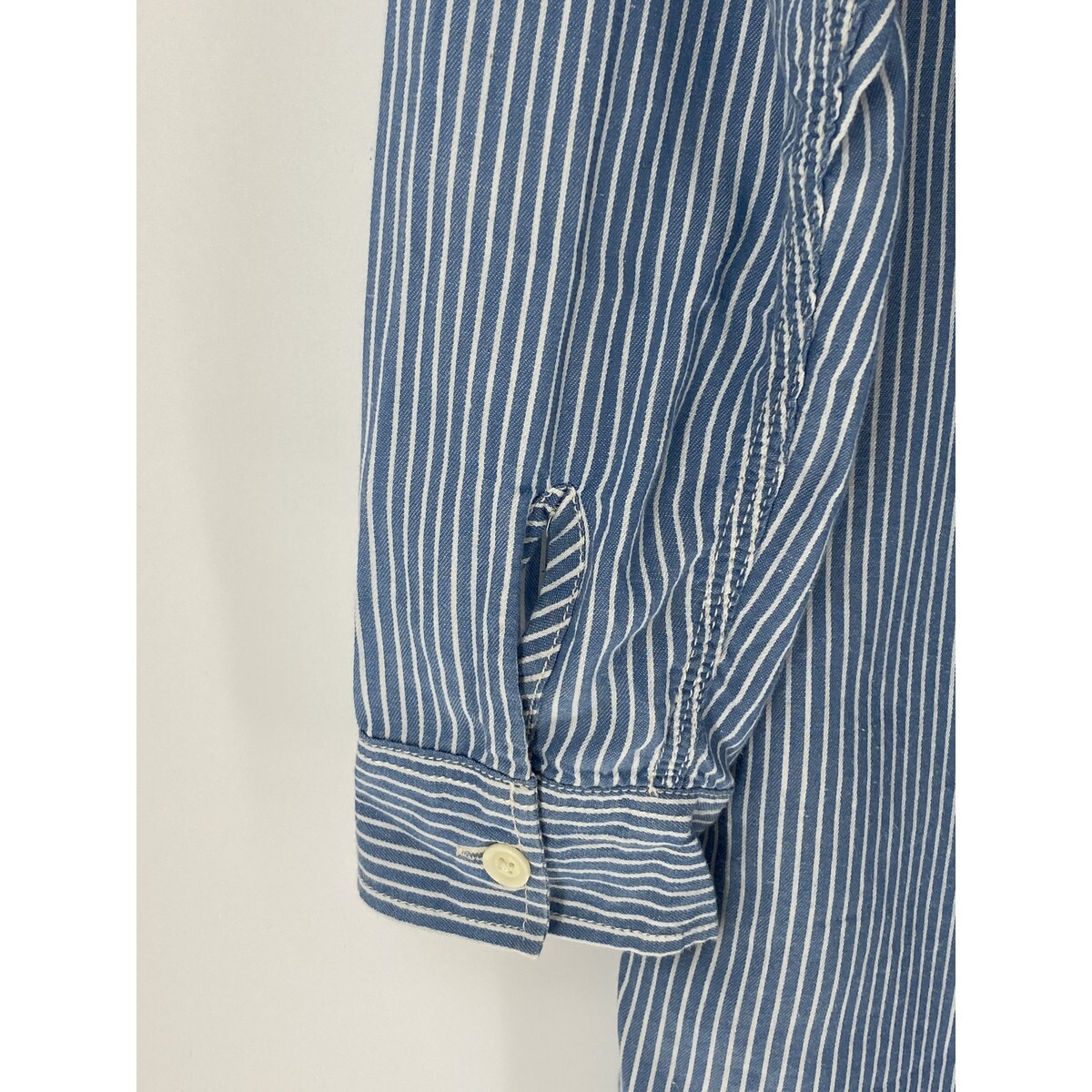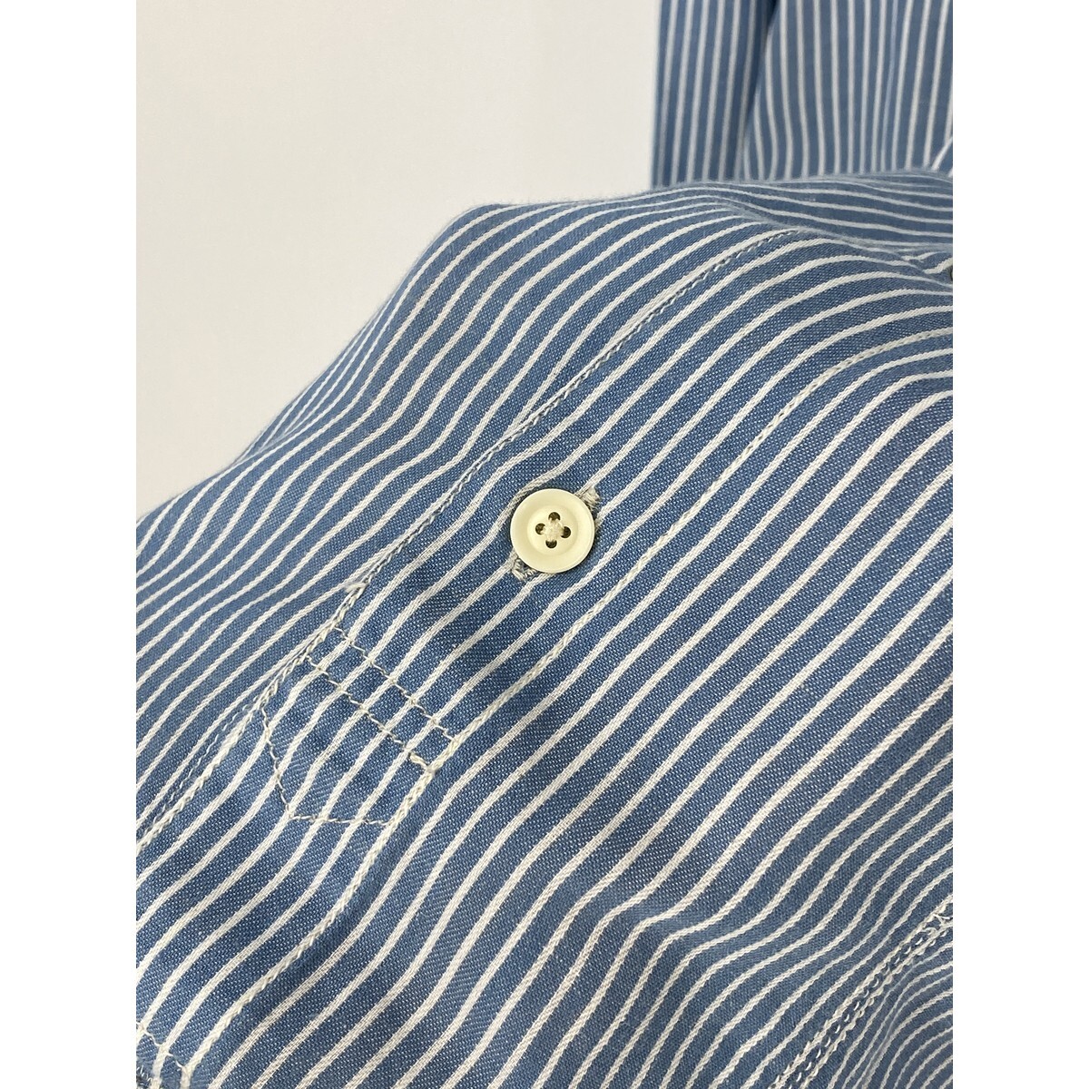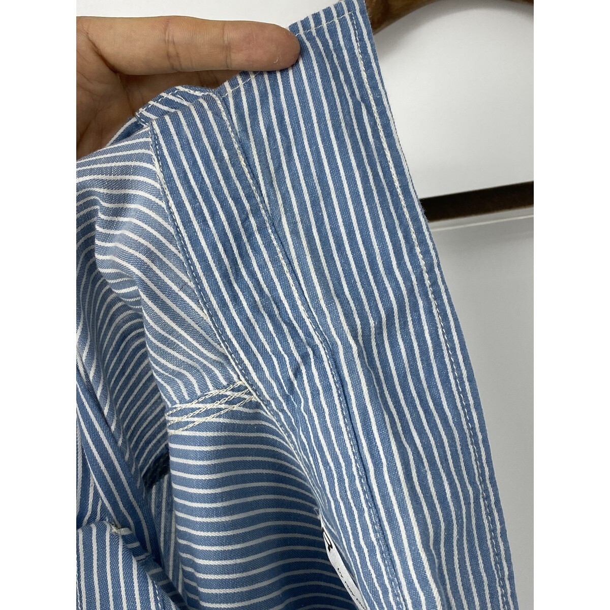 A9166/美品 春夏 Ray BEAMS レイ ビームス コットン リネン 長袖 ストライプ シャツ ワーク フレア 膝丈 ワンピース FREE 水色 レディース