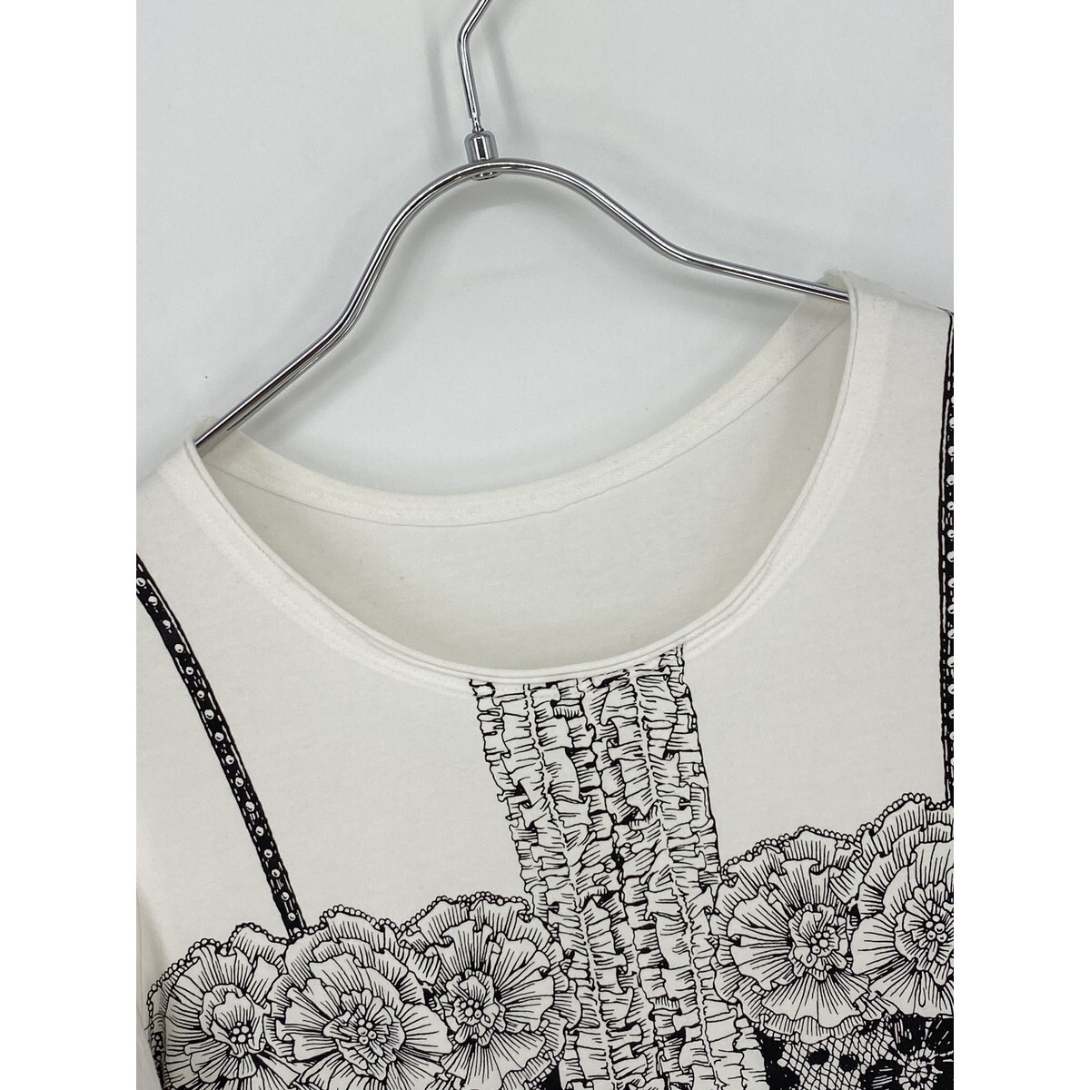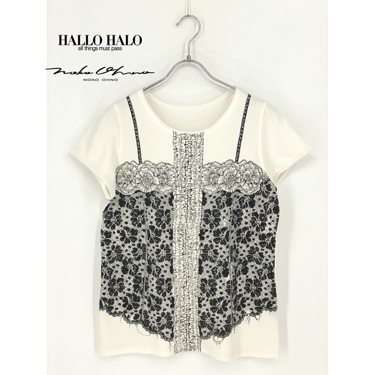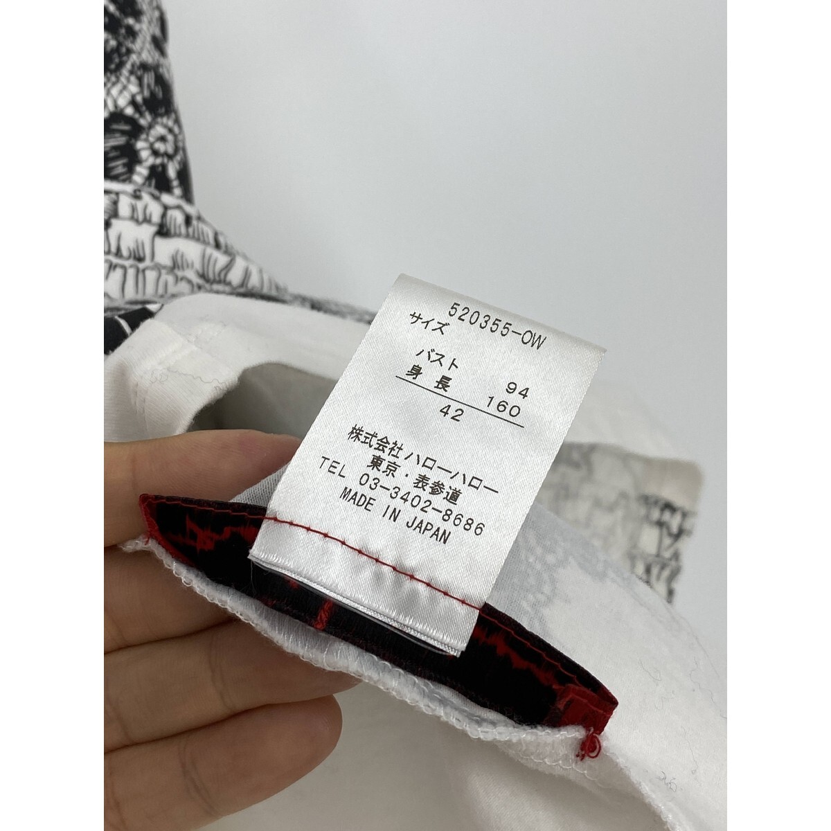 B0603/極美品 NOKO OHNO ノコオーノ ハローハロー コットン ストレッチ アート クルーネック 半袖 Tシャツ カットソー 42 L 白 レディース