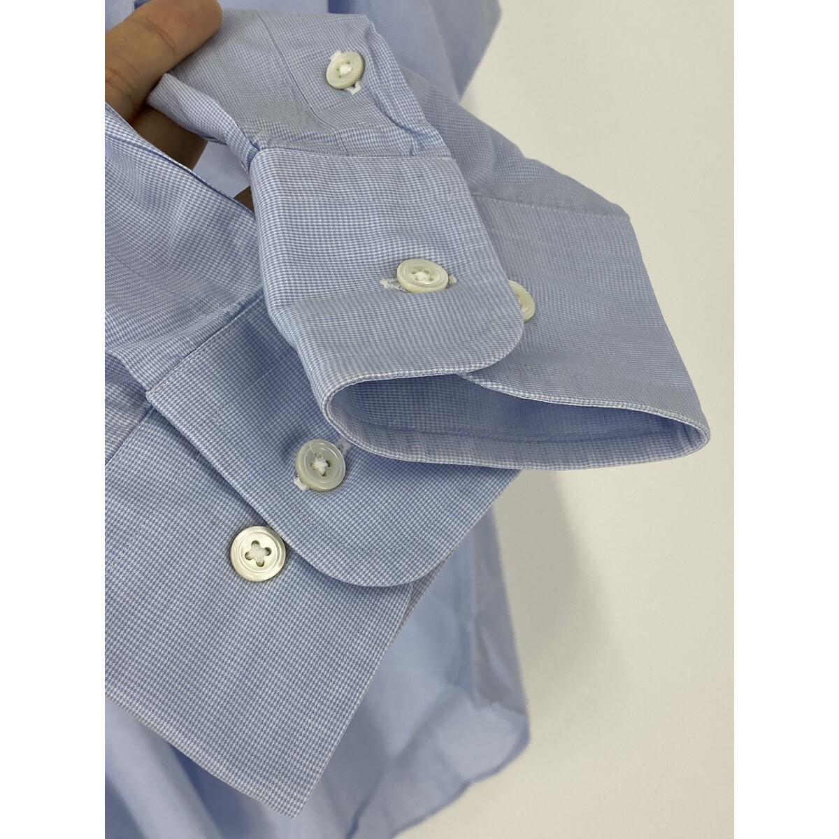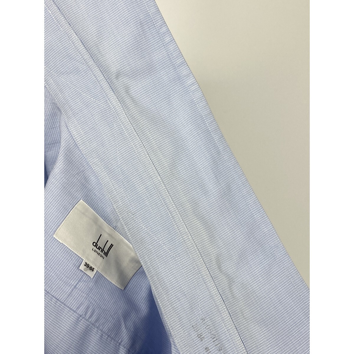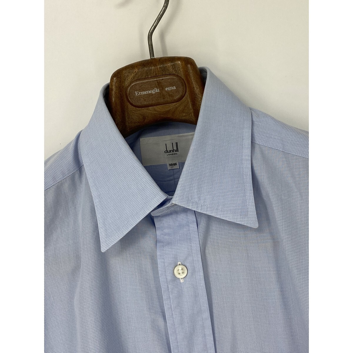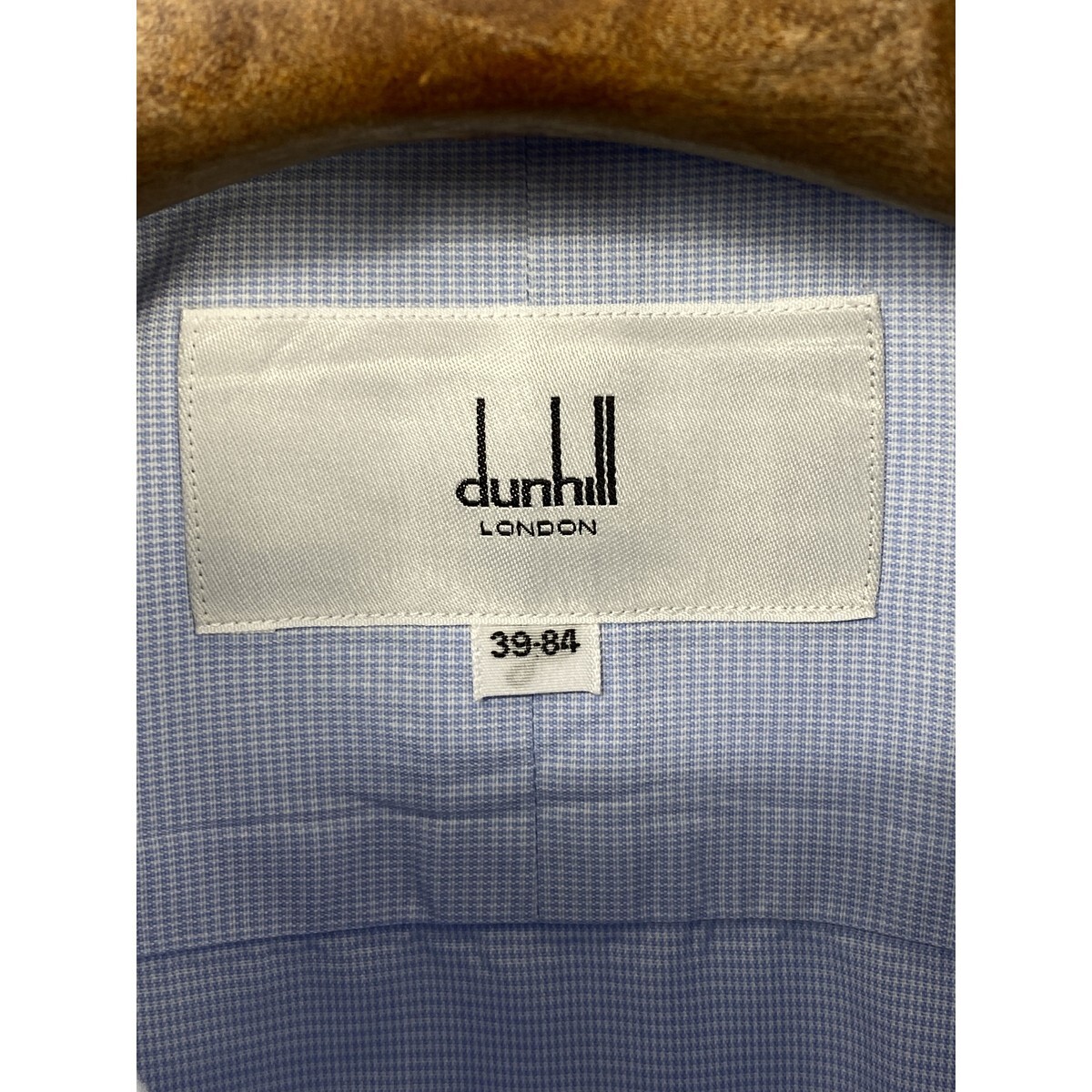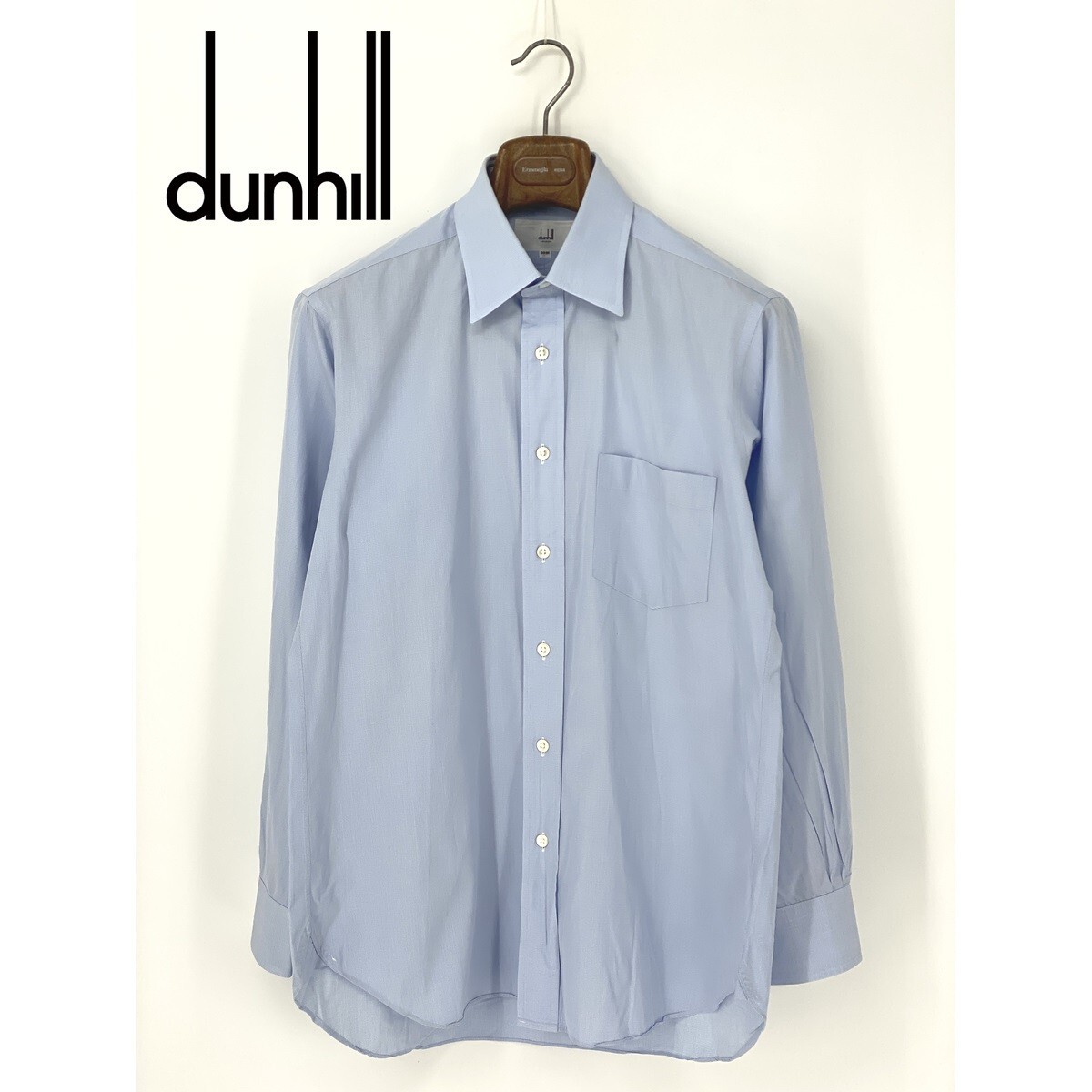 A8795/美品 春夏 dunhill ダンヒル コットン モザイク 長袖 ドレス カッター Yシャツ スーツ用 ビジネス 39-84 M程 水色 日本製