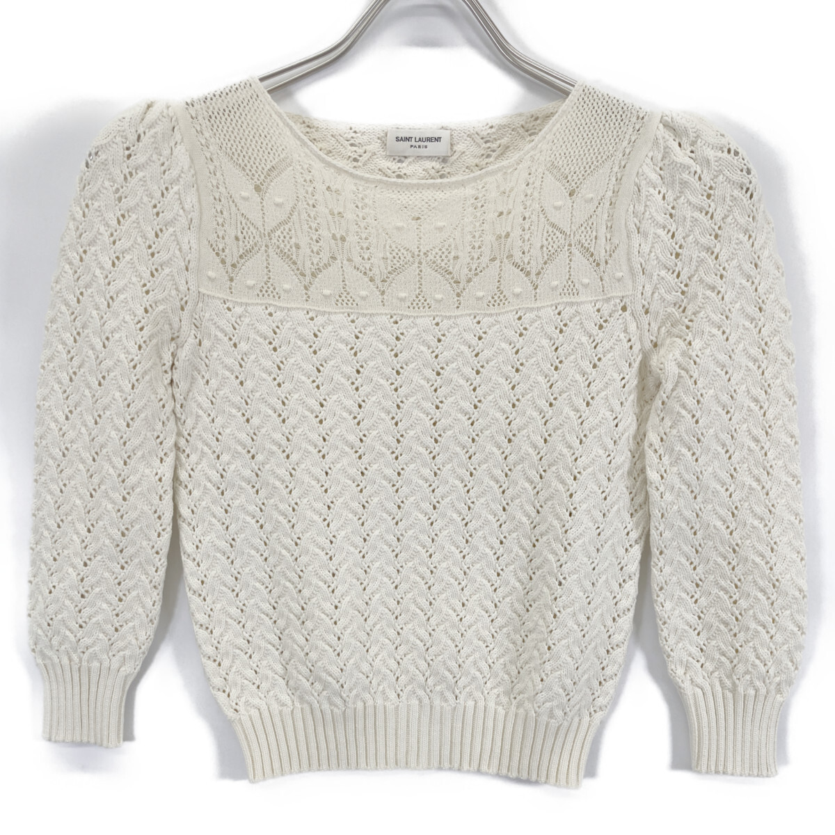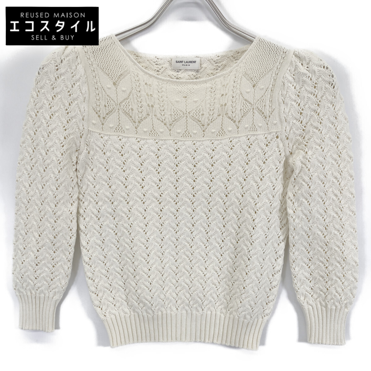 SAINT LAURENT PARIS サンローランパリ 510865 17年 コットン サマーニット アイボリー XS トップス コットン レディース 中古