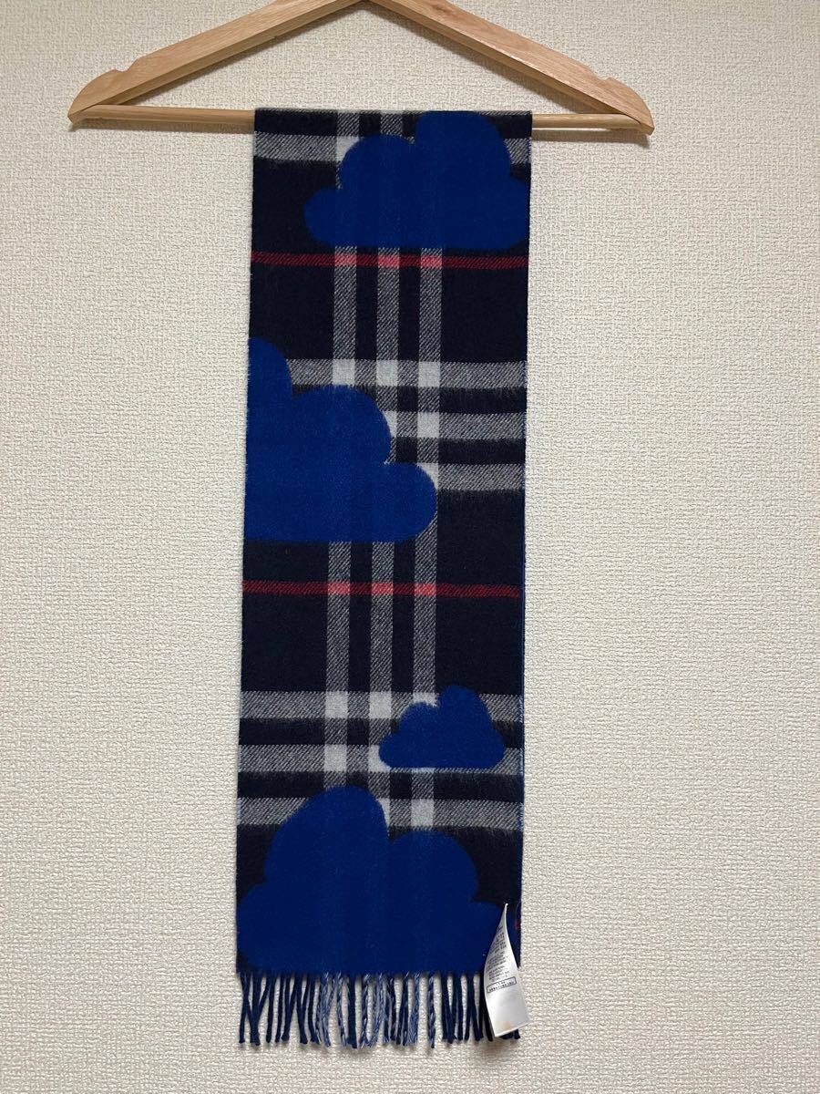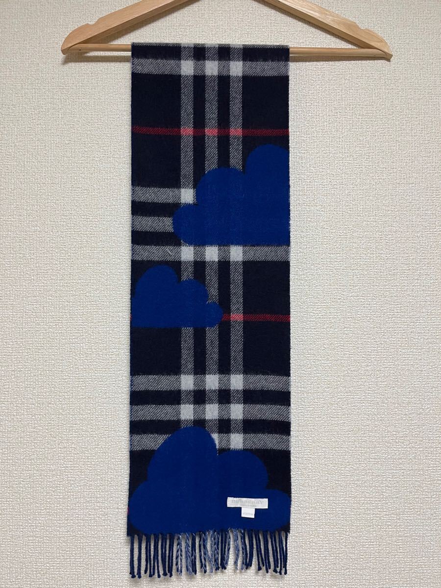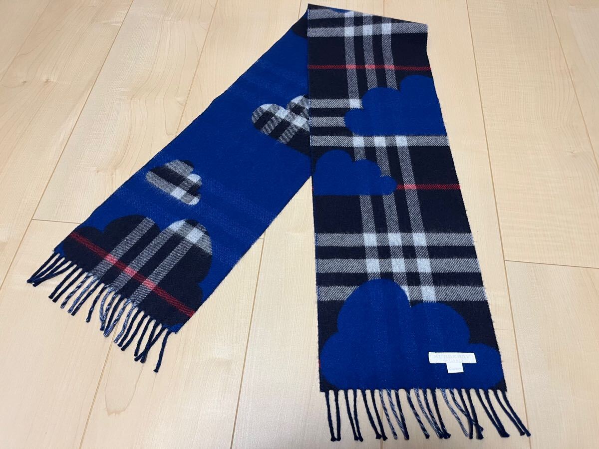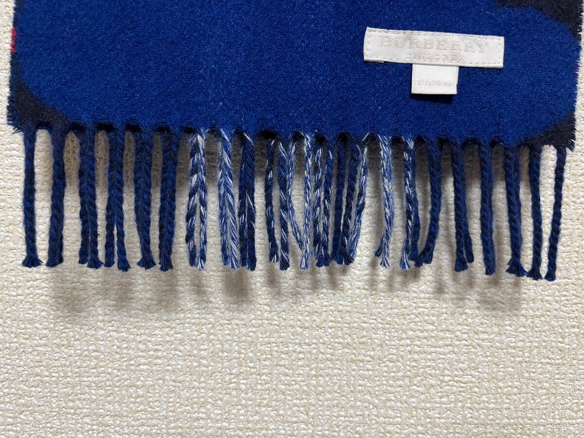 バーバリーカシミヤ100% マフラー 濃紺 ネイビー系