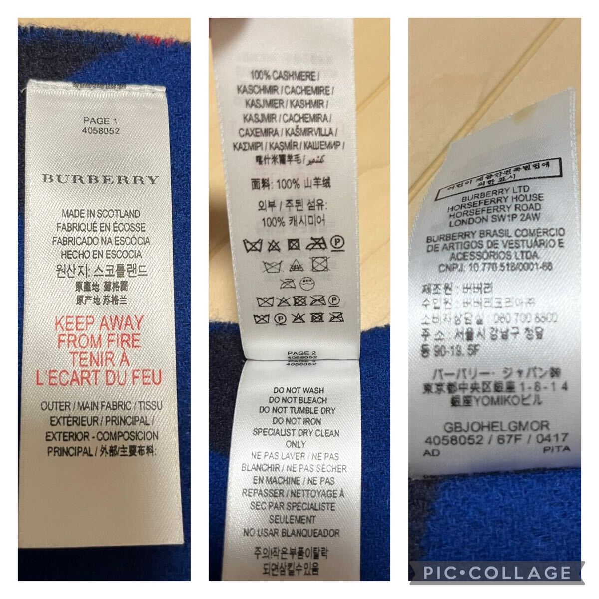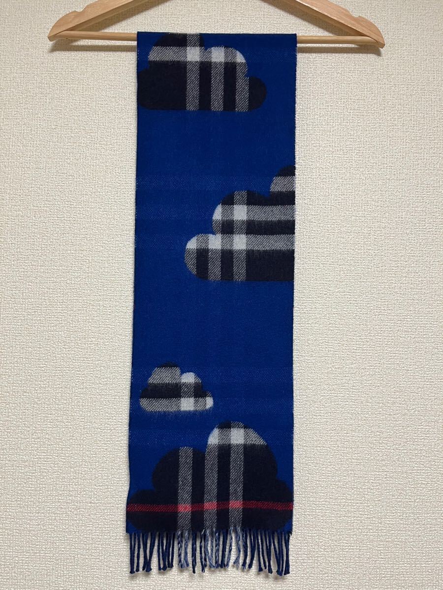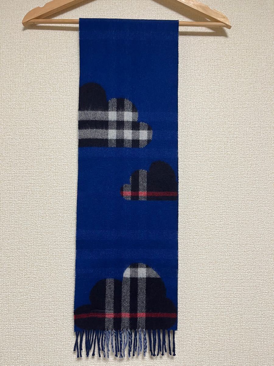 バーバリーカシミヤ100% マフラー 濃紺 ネイビー系