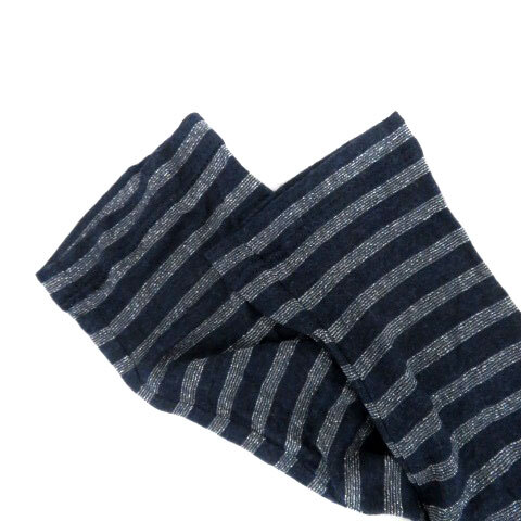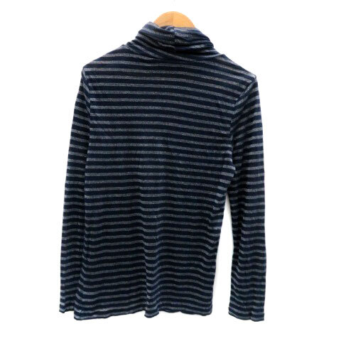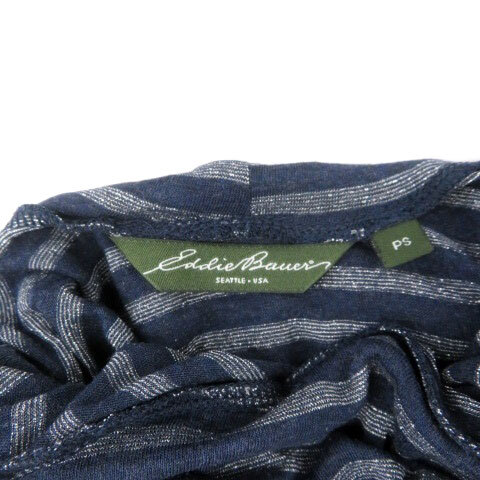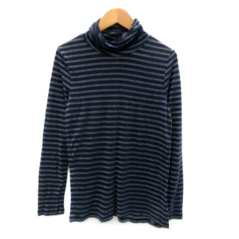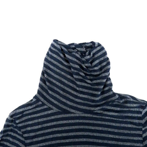 エディーバウアー EDDIE BAUER カットソー タートルネック 長袖 ボーダー柄 PS XS 紺 ネイビー シルバー色 /HO39 レディース
