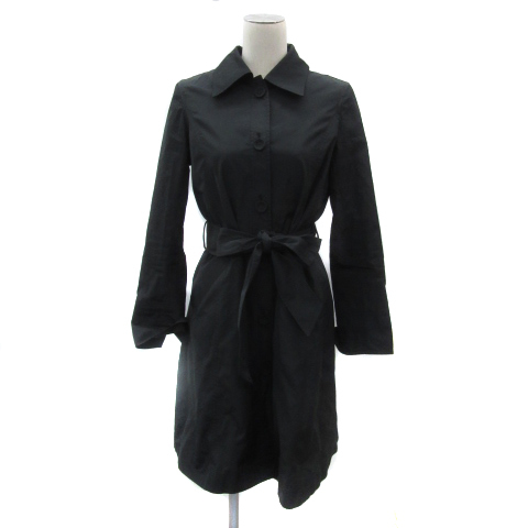 ノーリーズ Nolley's sophi スプリングコート ステンカラーコート ロング丈 リボンベルト付き 38 M 黒 ブラック /YS33 レディース