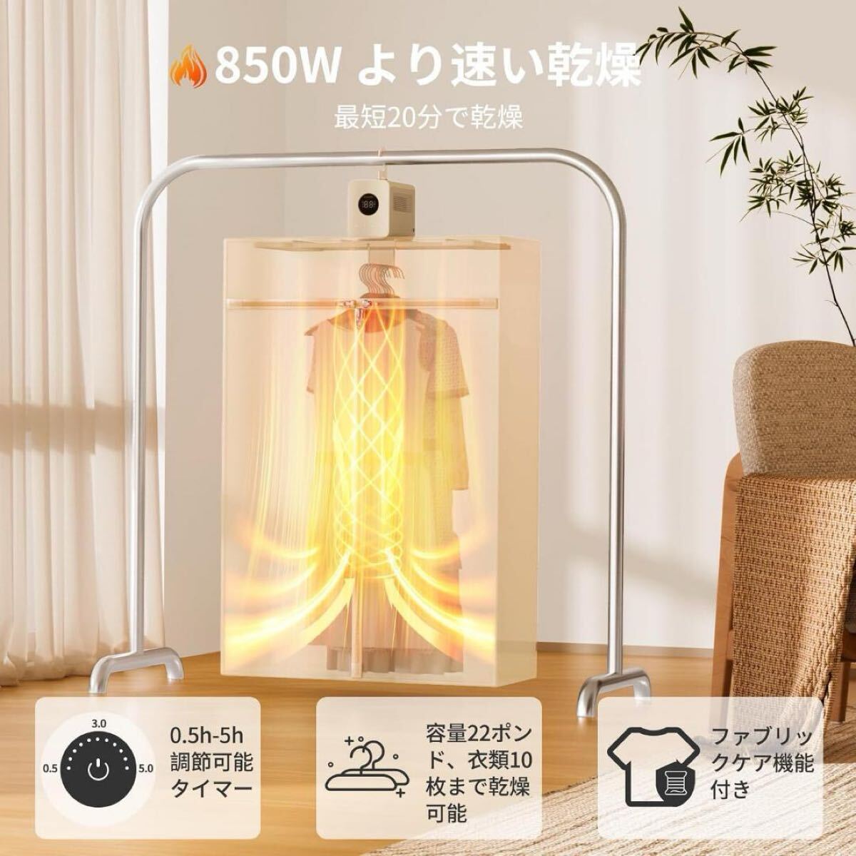 【850Wの高出力】: この乾燥機は、急速乾燥機能、先進のプラズマ技術を備えています。迅速で効率的な乾燥が可能で、同時にプラズマ【機能は細菌や異臭を効果的に除去し、衣類に包括的なケアを提供します。便利で迅速、衣類を清潔で新鮮に保ちます。