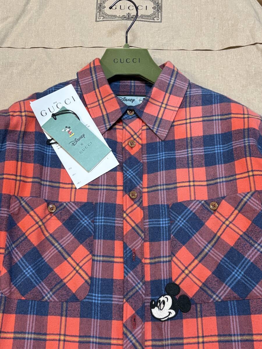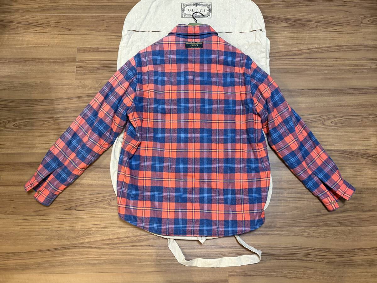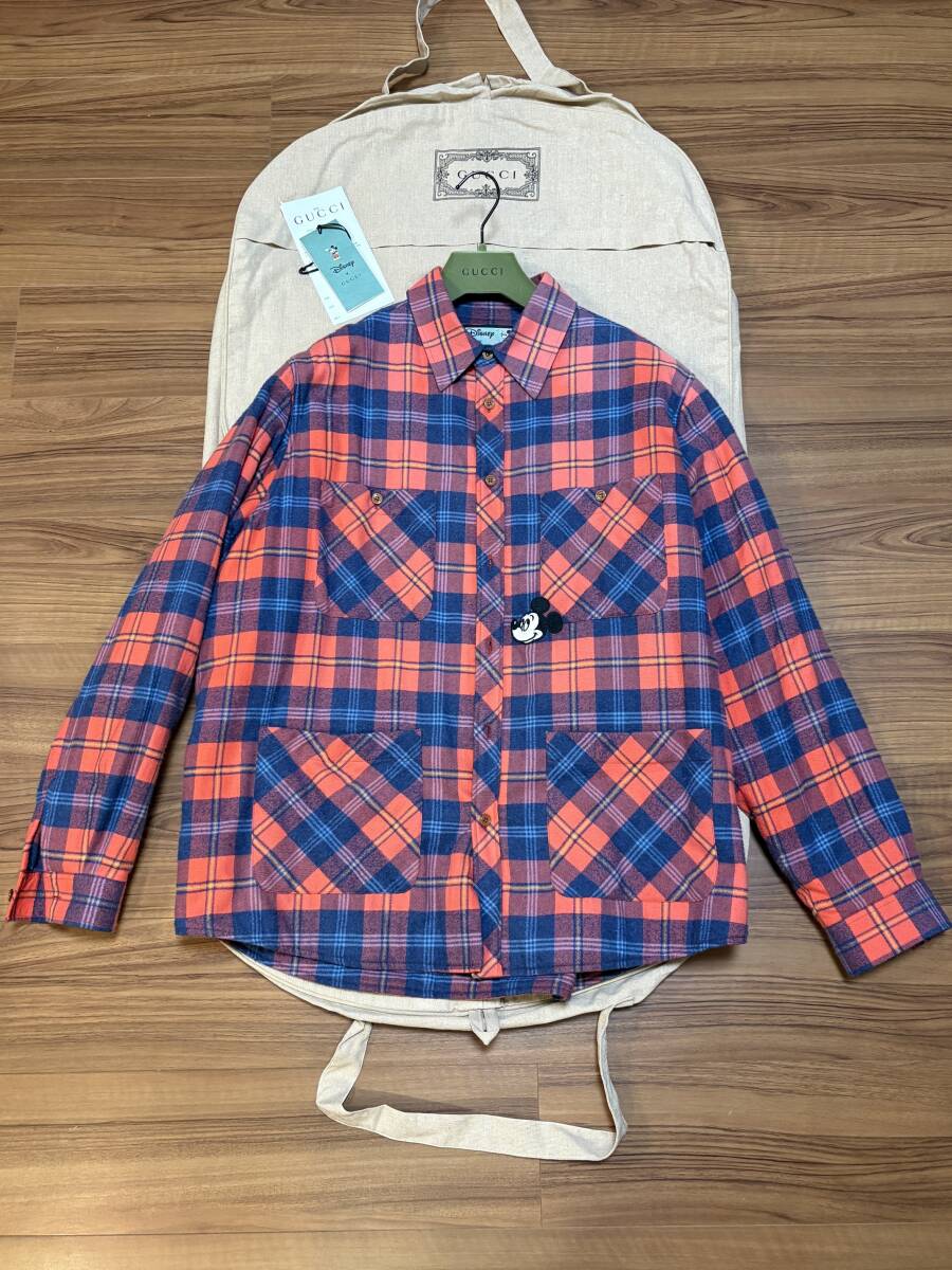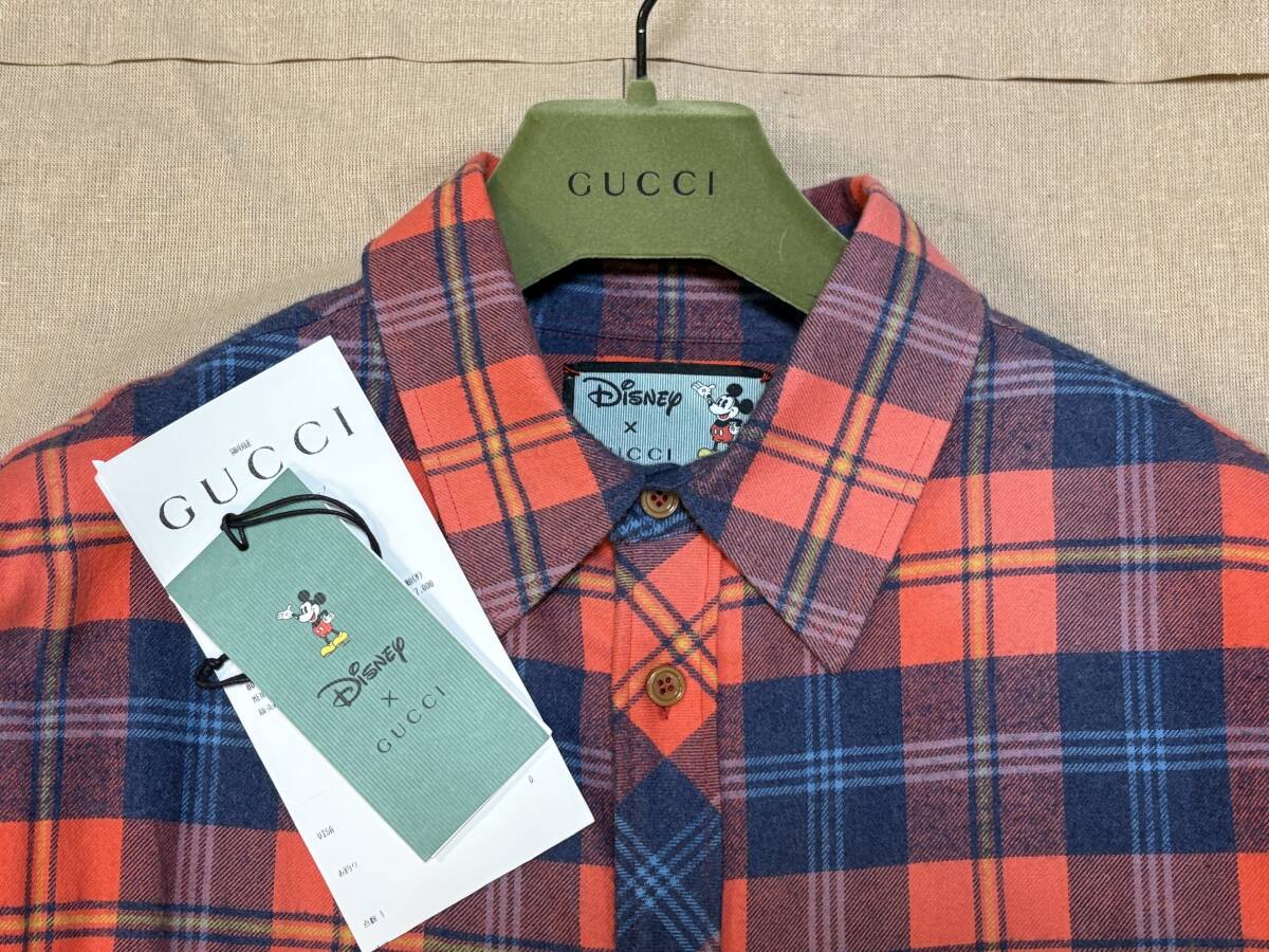 GUCCIとDisneyのコラボコレクションによるチェックシャツです。中綿が入っておりアウターとしても活躍します。