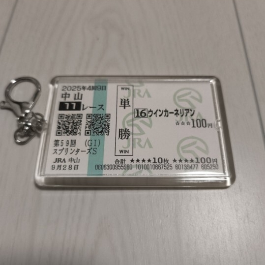 スプリンターズステークスを勝利したウインカーネリアンの現地的中単勝馬券をカラーコピーしたものです。