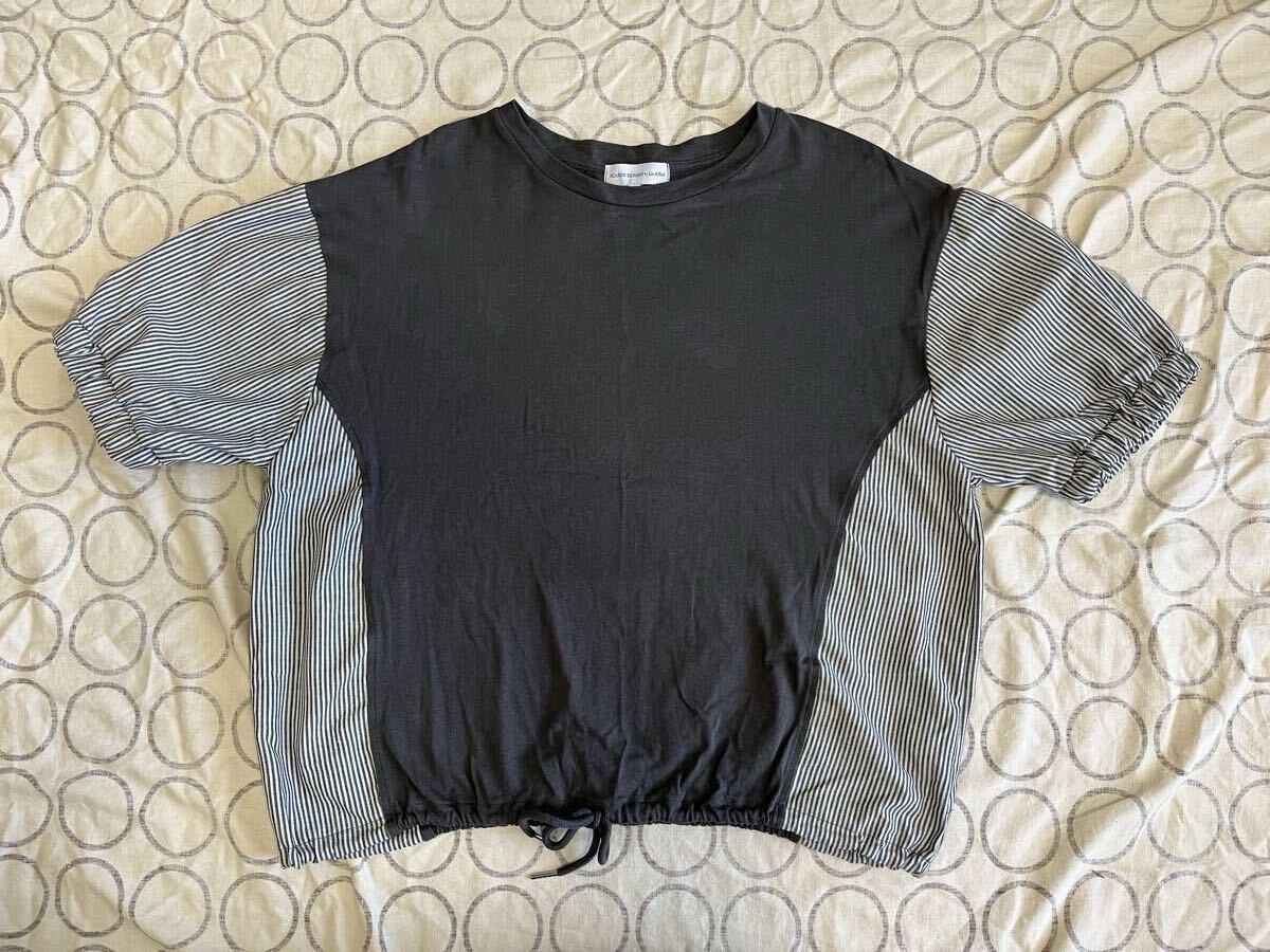 生地の組み合わせがかわいいレディース半袖カットソーです。