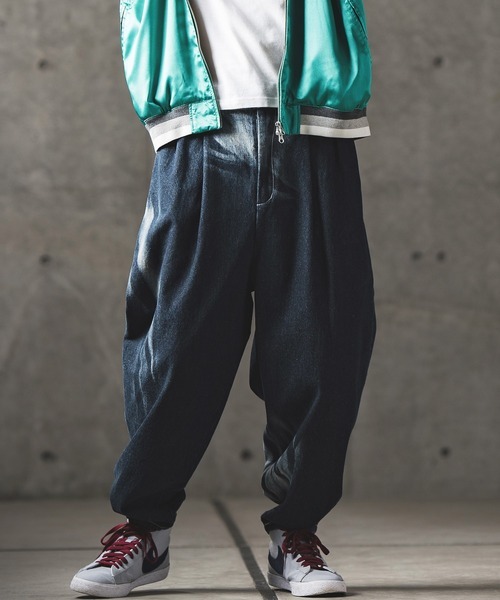 参考商品名:mp10763- Partially bleaching balloon silhouette denim pants デニムパンツ