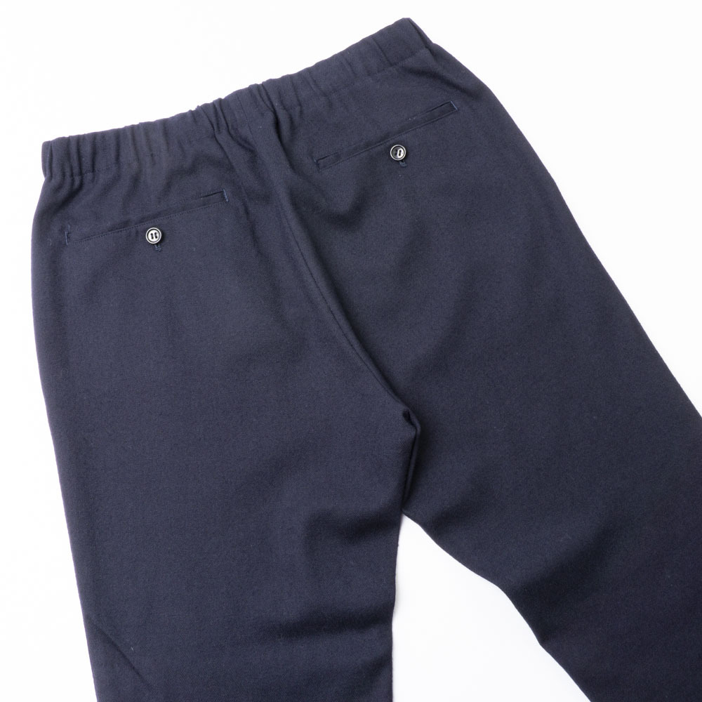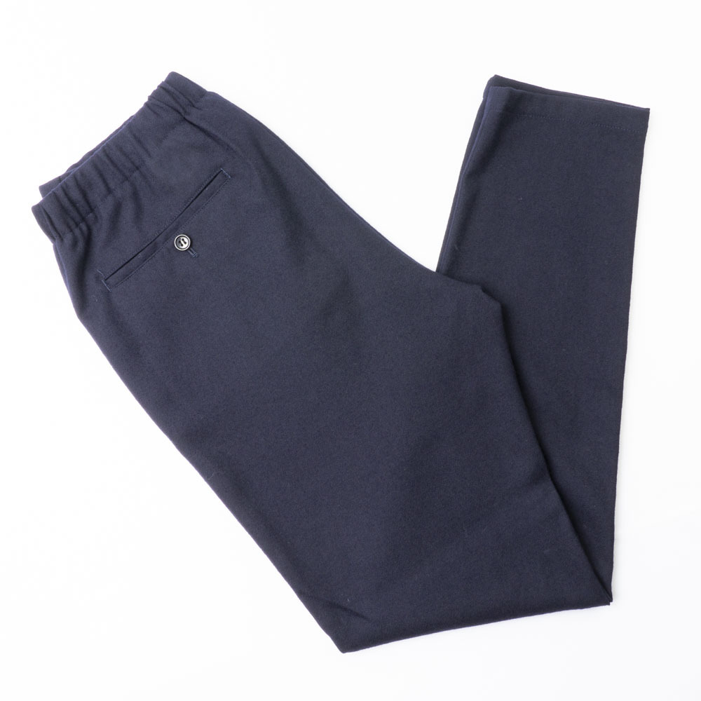 柔らかな起毛感のあるウール素材を使用した、伸縮性のある履き心地抜群の1着。