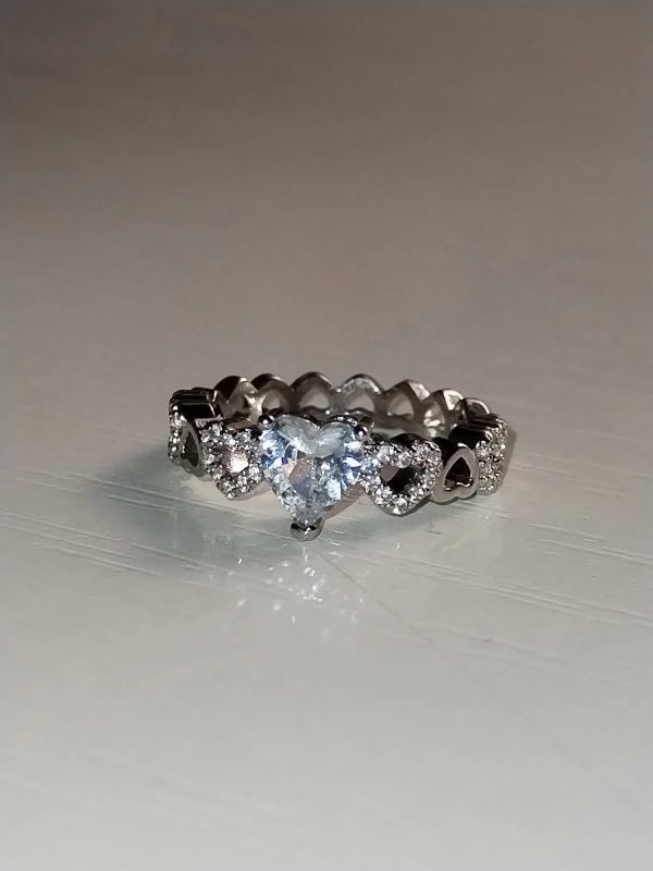 シルバー925色●AAAジルコニアダイヤモンドリング11号ハート指輪ジュエリー