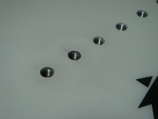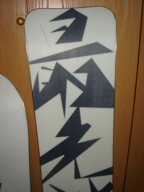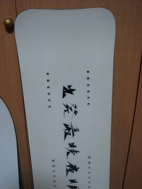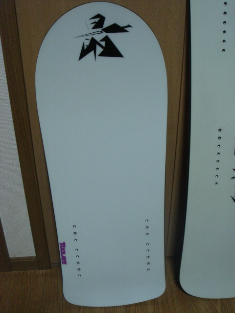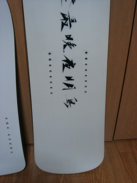尚、リアボードの右後部用のインサートホール1箇所の周りにブッシュ取付け時のわずかなトップシートヒビがありますが、お店からは取付けや滑走には問題は無いとのことでした。