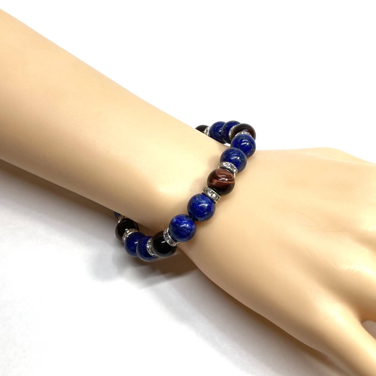 ラピスラズリ&レッドタイガーアイ パワーストーン ブレスレット 天然石ブレス (シルバー) 10mm メンズ・レディース 金運 ☆