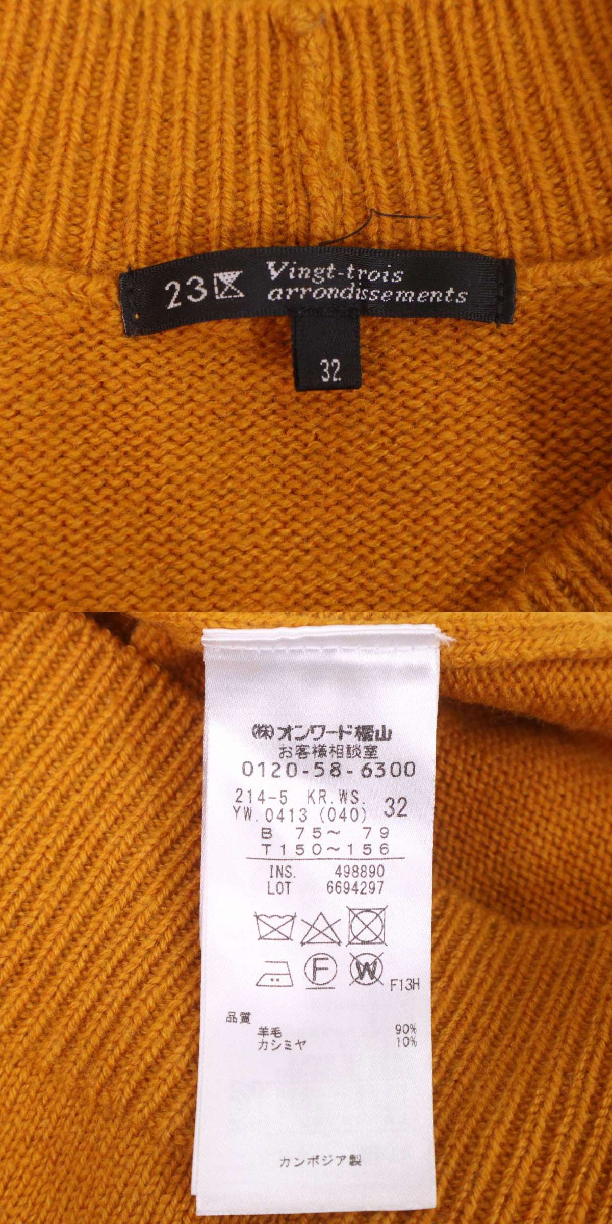 23区 秋冬★ カシミヤ混 ウール Vネック ニット セーター Sz.32 レディース 小さいサイズ