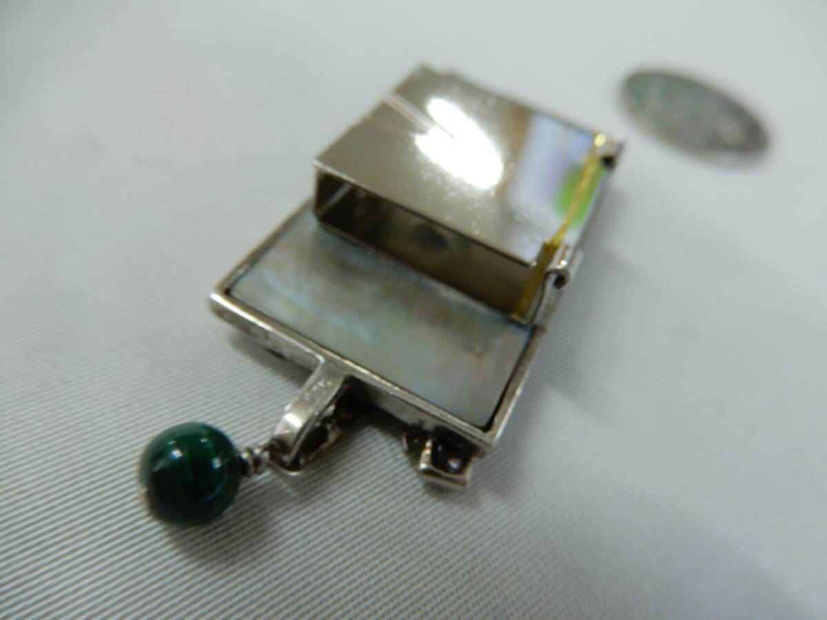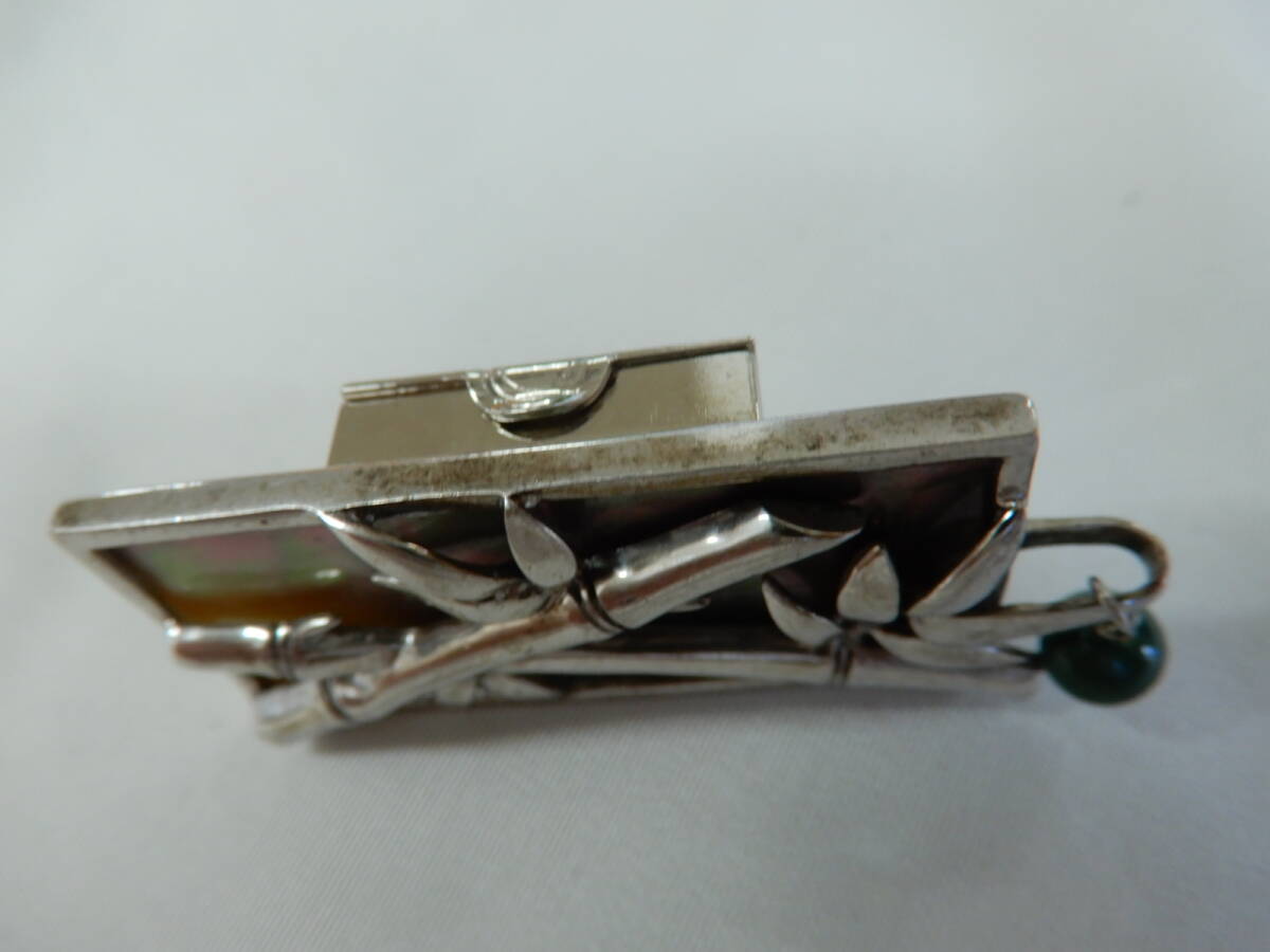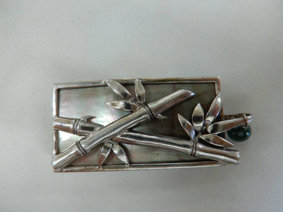 <銀の斧>925刻印あり・銀枠・貝製帯留め・小さな石付き