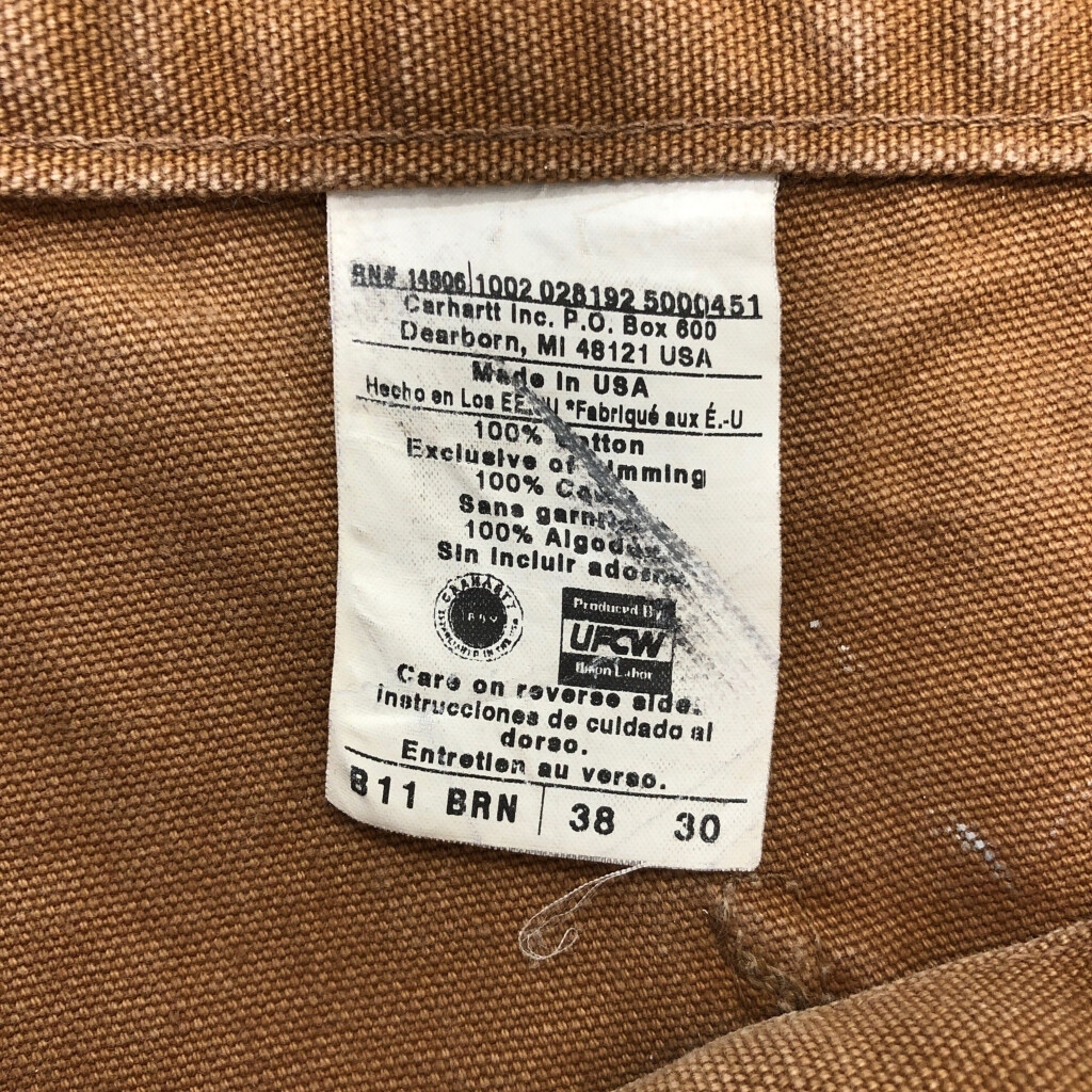 【商品管理番号】 V0411 【ブランド】 Carhartt/カーハート 【サイズ】 W38 L30 【実寸サイズ】 ウエスト:約92cm 股上:約33cm 股下:約76cm わたり幅:約39cm 裾幅:約25cm 【主な素材】 表地 : コットン 【色】 ブラウン 【仕様】 生産国 : USA製 00年代 大きいサイズ ダック ペインターパンツ 【状態】 汚れ:股、もも 破れ:スネ |