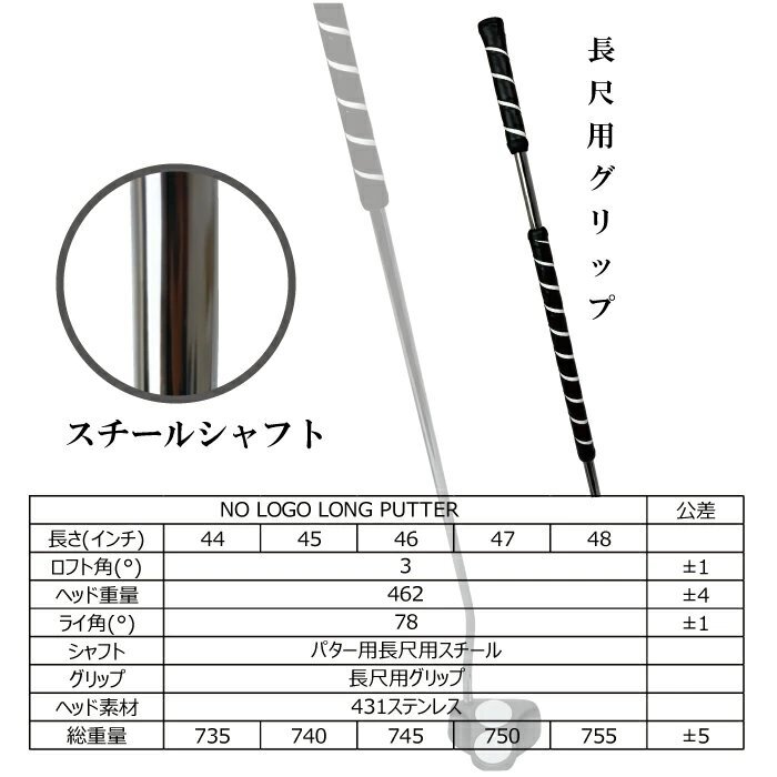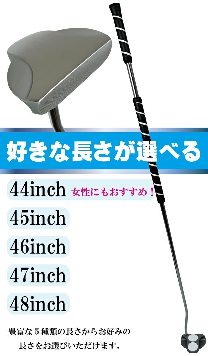 当店オリジナルのノーロゴシリーズから、 無刻印 長尺パター 2ボール型が登場!! 長さは44-48inchの5種類。 出品タイトルをご確認ください。 長尺パター特有の距離感、方向性が掴みやすく、2ボール仕様によりテークバック初動を優しくサポートしてくれます。 約460gの超重量級ヘッドを採用することにより安定感がさらに抜群になりました! CNCミーリング加工フェースで柔らかいタッチが打ち出せる! |