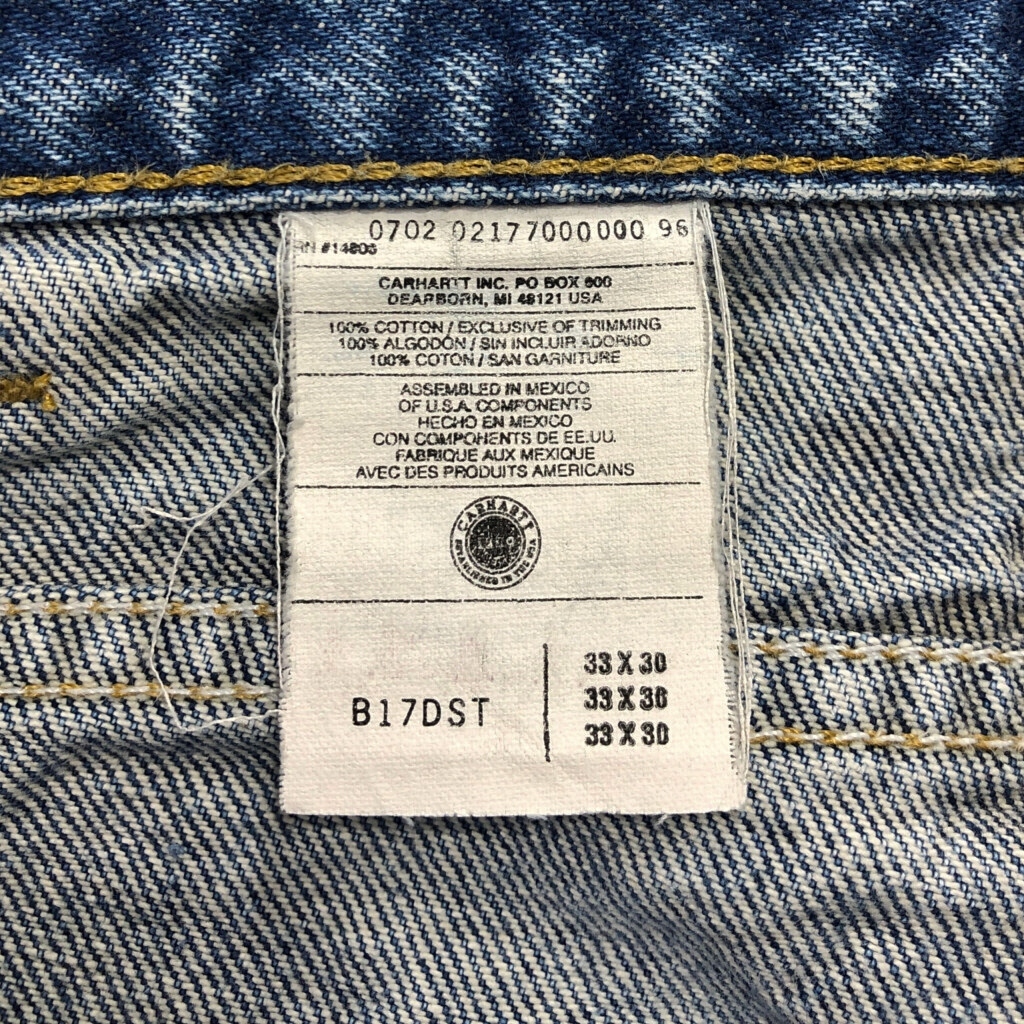 | 【商品管理番号】 V1468 【ブランド】 Carhartt/カーハート 【サイズ】 W33 L30 【実寸サイズ】 ウエスト:約84cm 股上:約29cm 股下:約76cm わたり幅:約32cm 裾幅:約18cm 【主な素材】 表地 : コットン 【色】 ブルー 【仕様】 00年代 【状態】 汚れ:もも、ひざ キズ:腰、裾 | |||