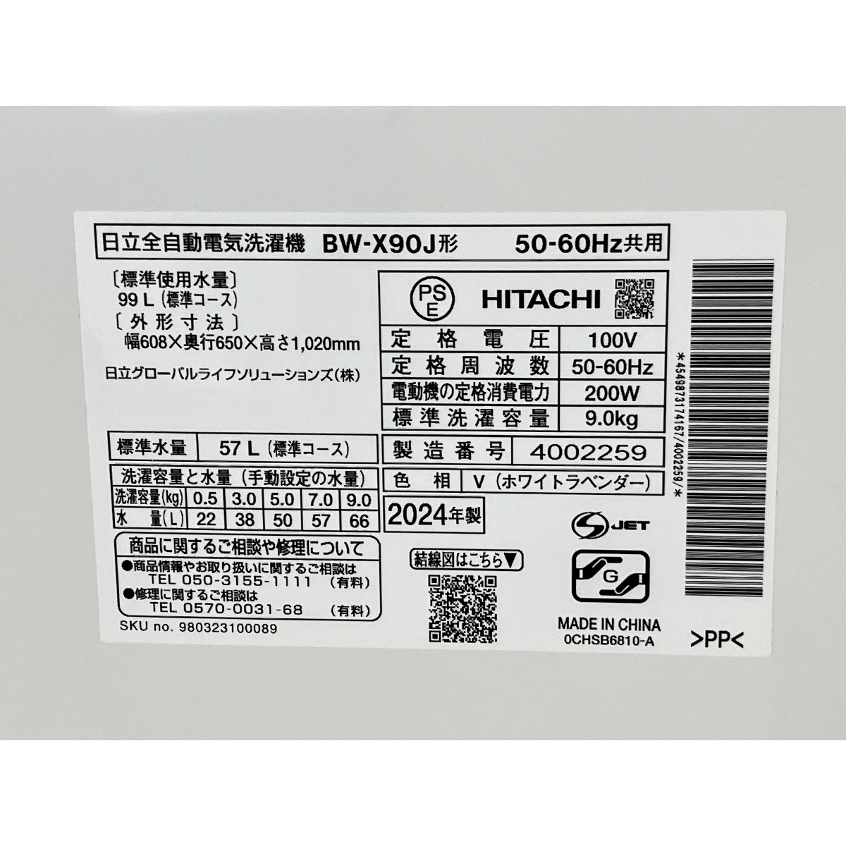 日立 BW-X90J 全自動洗濯機 ビートウォッシュ 2024年 中古 楽 K10400316 |