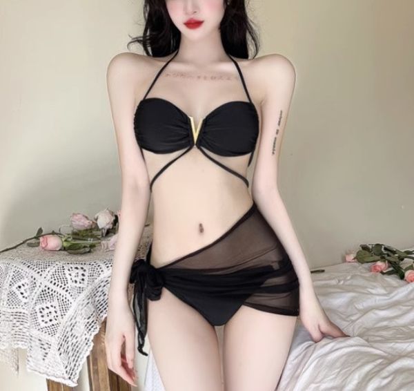 【イチオシ厳選商品】 レディース 水着 セパレート ビキニ ホルターネック パレオ b90