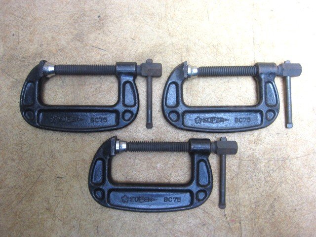 送料無料 SUPER TOOL スーパーツール シャコ万力 BC75 BC-75 最大口開き75mm アゴ深さ46mm バーコ型 計3点 クランプ 加工治具 固定