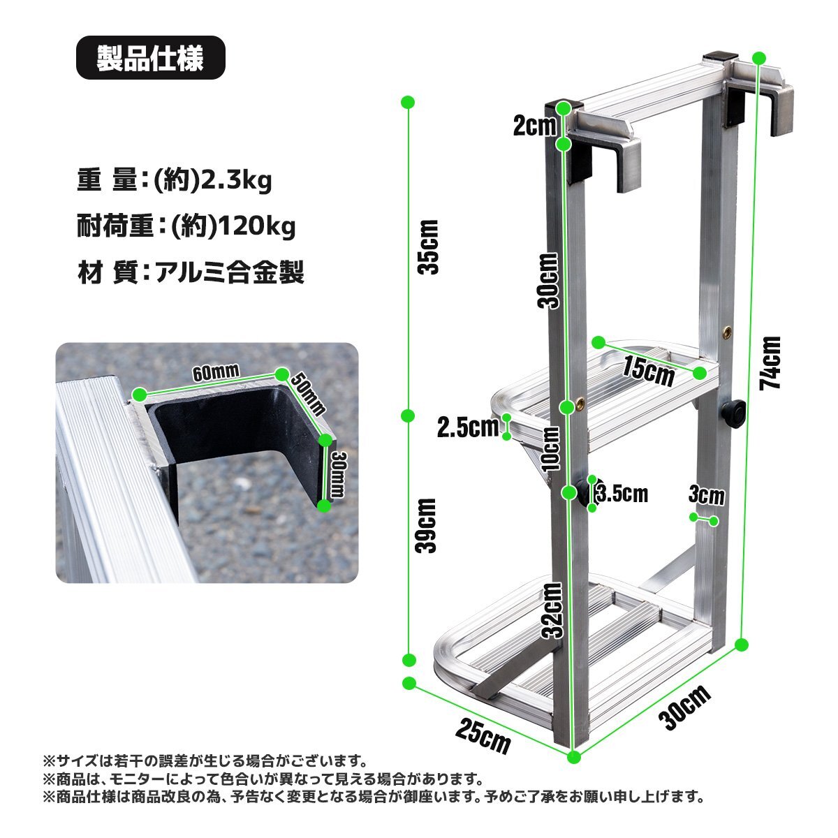 トラックの荷台に乗り降りしやすいように設計されたアルミ製のステッパーです。