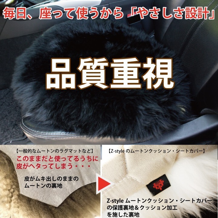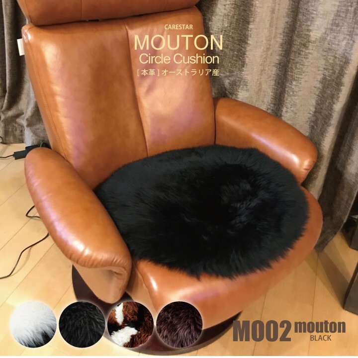 商品名 ■Z-style ムートン【本革】羊毛 ロング [長毛] サークル型(円形)クッション ブラック