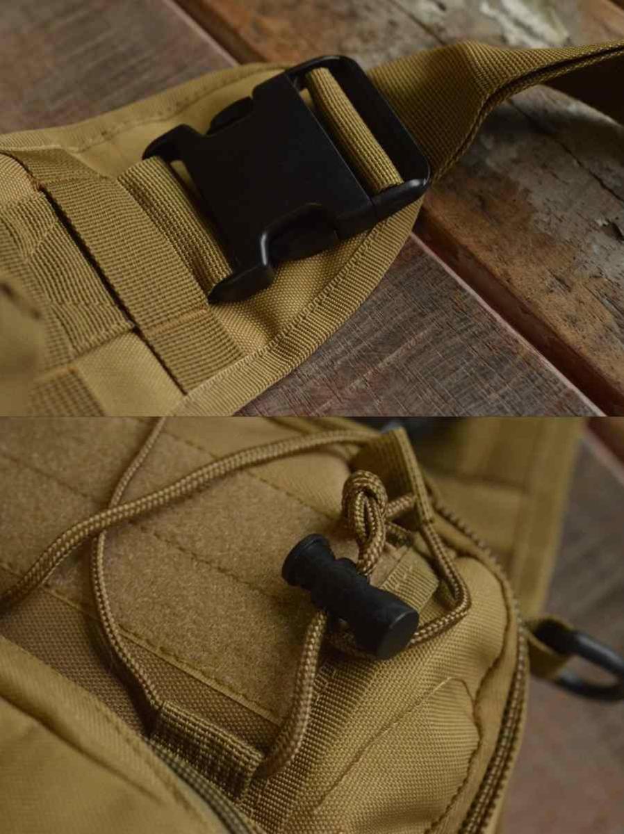 サイドリリースバックル、コードストッパー、バンジーコード、マジックテープ(ベルクロ)を惜しみなく採用しカッコよく仕上がっています。