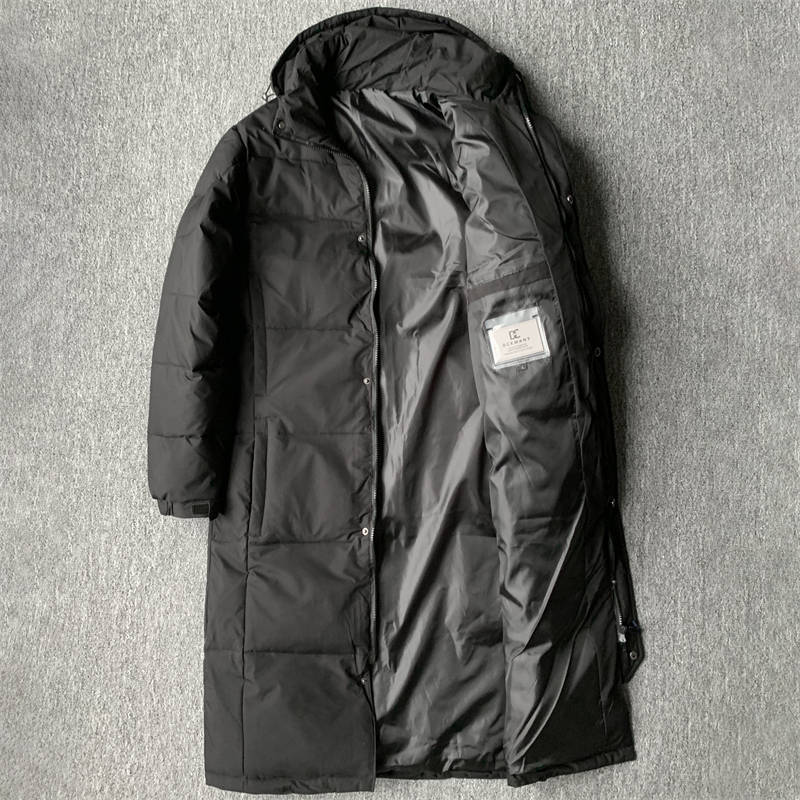 6010-3XL黒色 ダウンコート メンズ ダウン90% フード着脱可能 新品DCKMANY 超防寒 防風 厚手 超ロング丈 膝下丈 キルティング コート