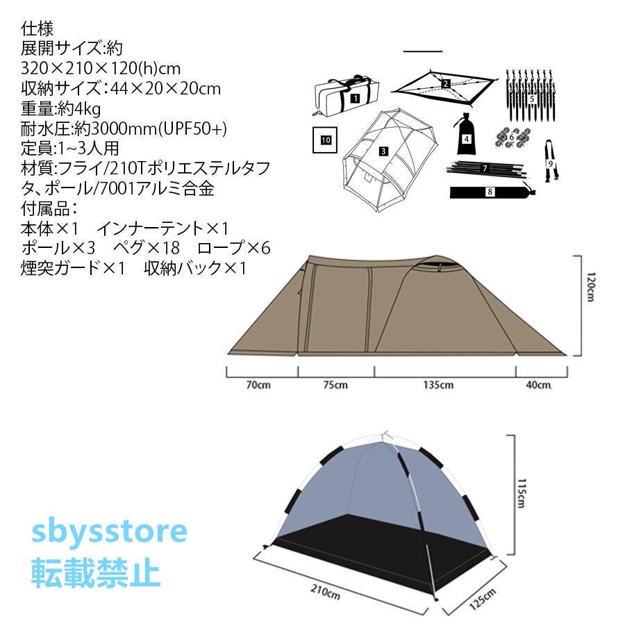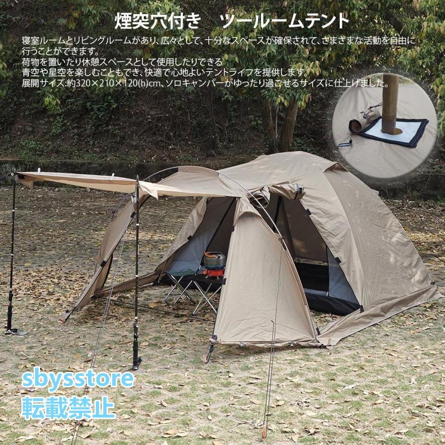 トンネルテント ツーリングテント ソロテント ツールームテント 煙突穴付き 雪スカート付き UVカット 耐水インナーテント付き 1~3人用