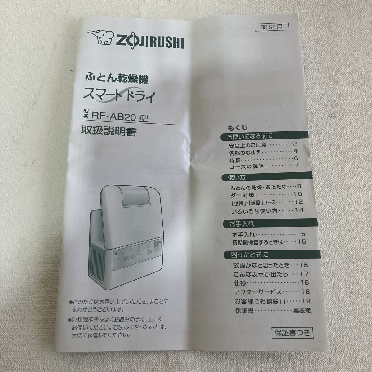 象印 ふとん乾燥機 スマートドライ RF-AB20 ベージュ ZOJIRUSHI 乾燥機 布団乾燥機 ダニ対策 衣類乾燥 押し入れ乾燥 動作確認済 2016年製