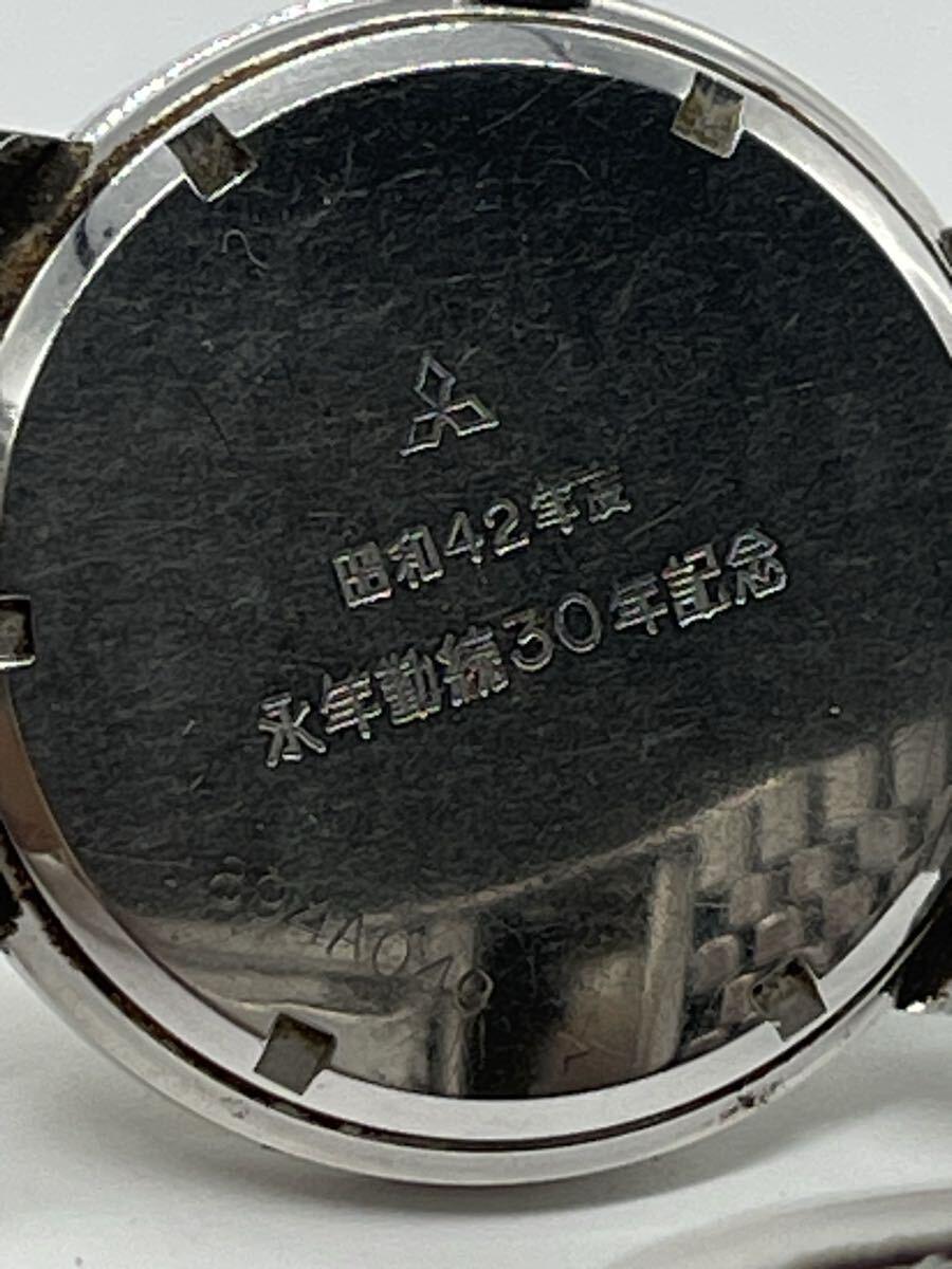 The case back is engraved with Japanese characters reading “Showa 42 (1967) 30 Years Long Service Commemoration”, likely a custom-made corporate award piece for Mitsubishi Group employees.