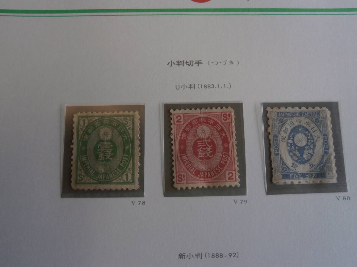 日本普通切手未使用、U小判、新小判各々完。表面は奇麗でwell centerですが、裏面はヒンジやヒンジ跡、汚れが見られます