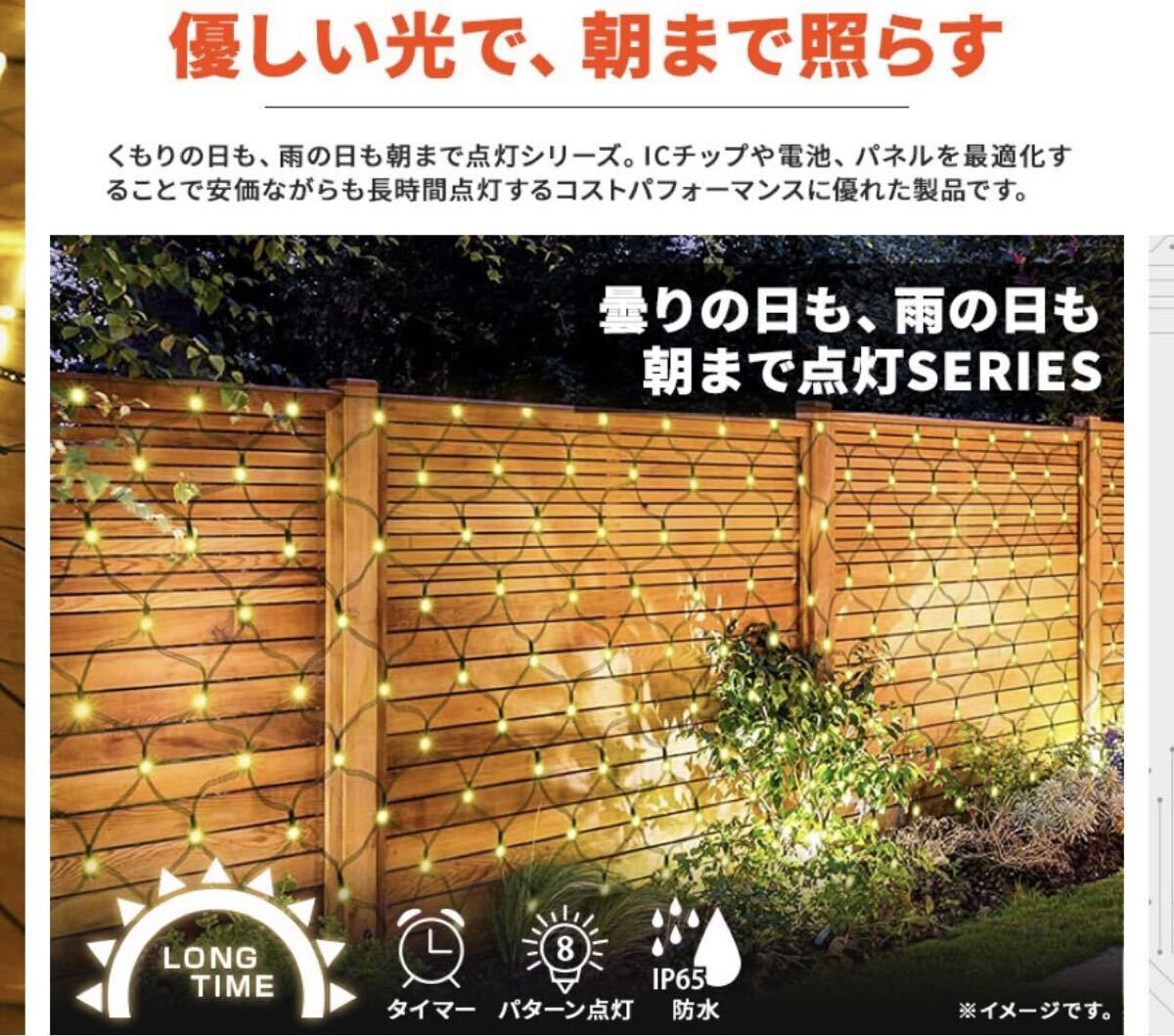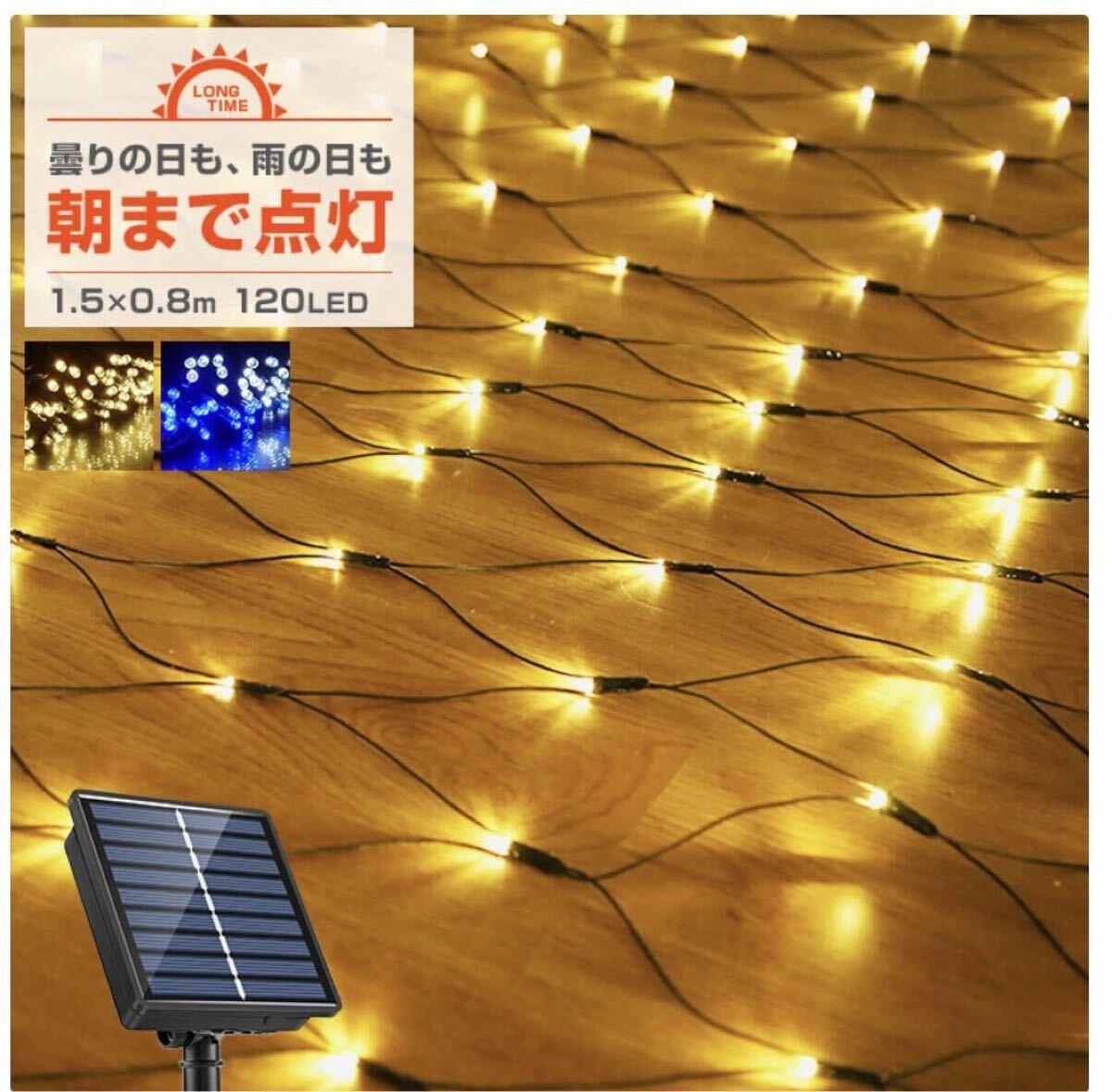ソーラー イルミネーション ネットライト LED 120球 1.5×0.8m 屋外用 防水 長時間点灯 タイマー 8パターン点灯 安い led 充電式 カーテンライト 電飾 おしゃれ クリスマス ツリー 樹木 フェンス ハロウィン キャンプ
