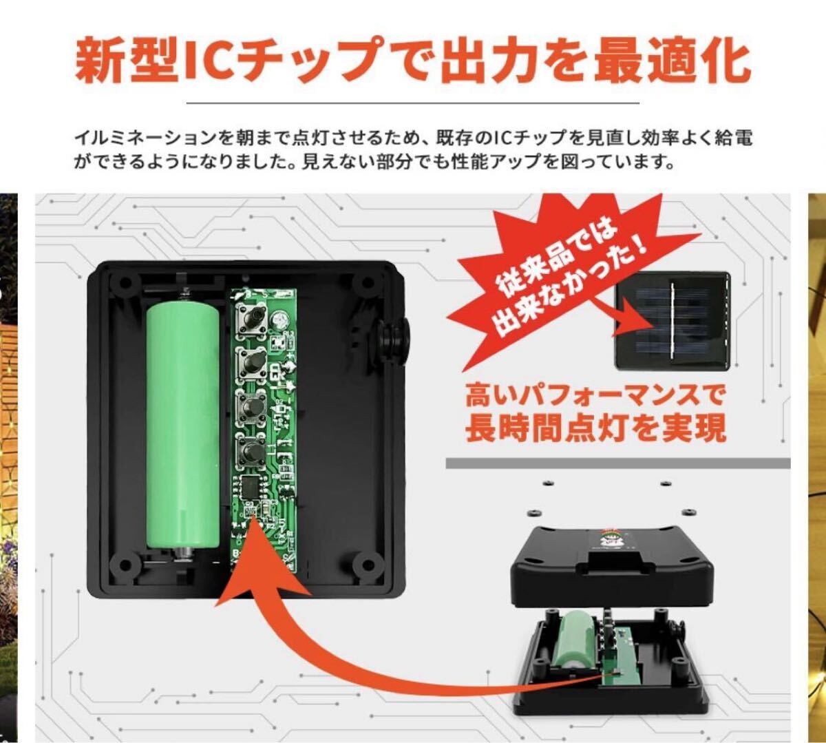 くもりの日も、雨の日も朝まで点灯シリーズ。ICチップや電池、パネルを最適化することで安価ながらも長時間点灯するコストパフォーマンスに優れた製品です。