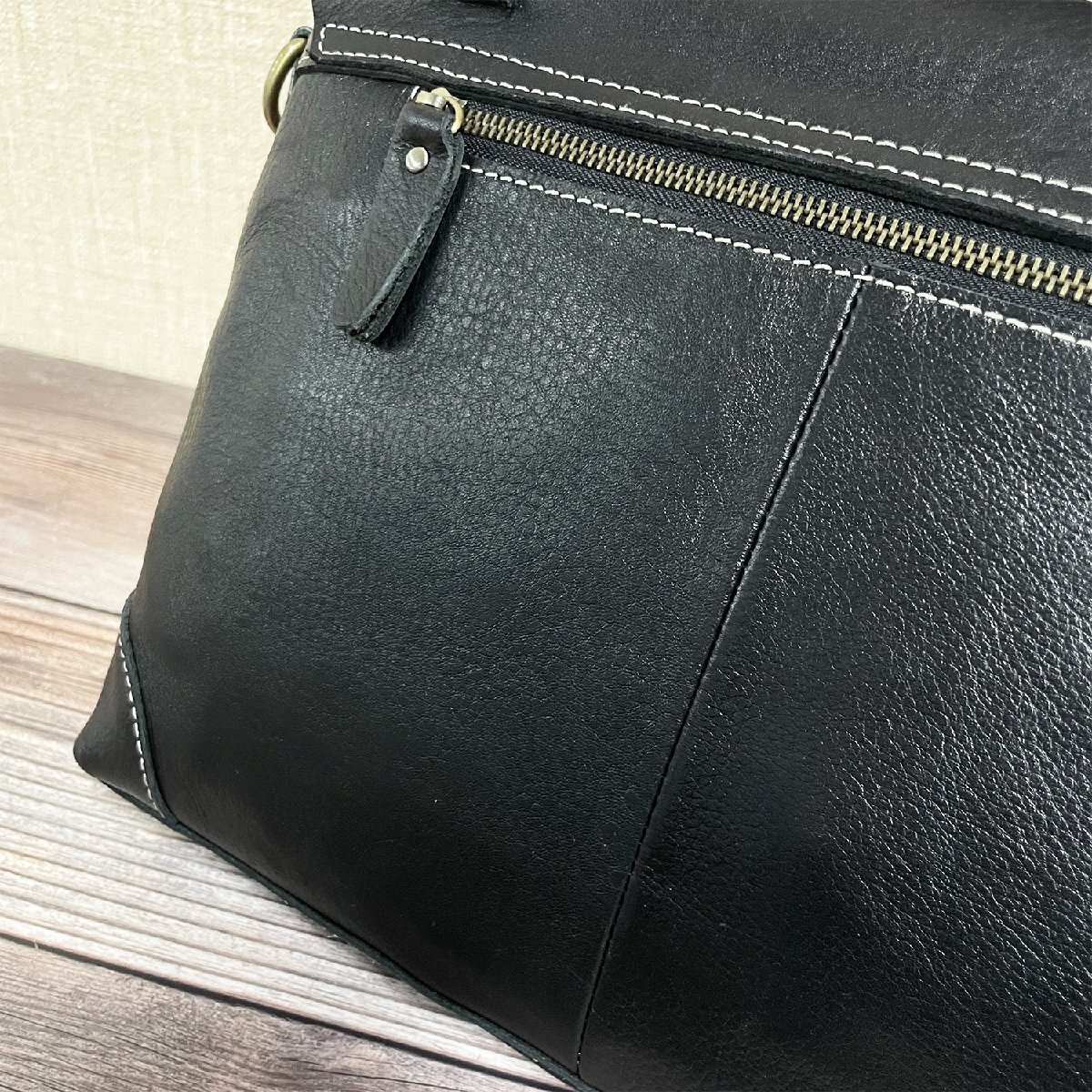 素材には耐久性の高い本革を使用、使用するほどに劣化する合皮と違い、使い込むほどに味が増していきます。同じ位の厚みがある革と比較しても、こちらの高級革は、柔らかくしっとりとした手触りが特徴です。重い荷物で使用していくにつれ傷みやすい部分も丁寧に縫製してあるので、長年愛着持って使用していただけます。