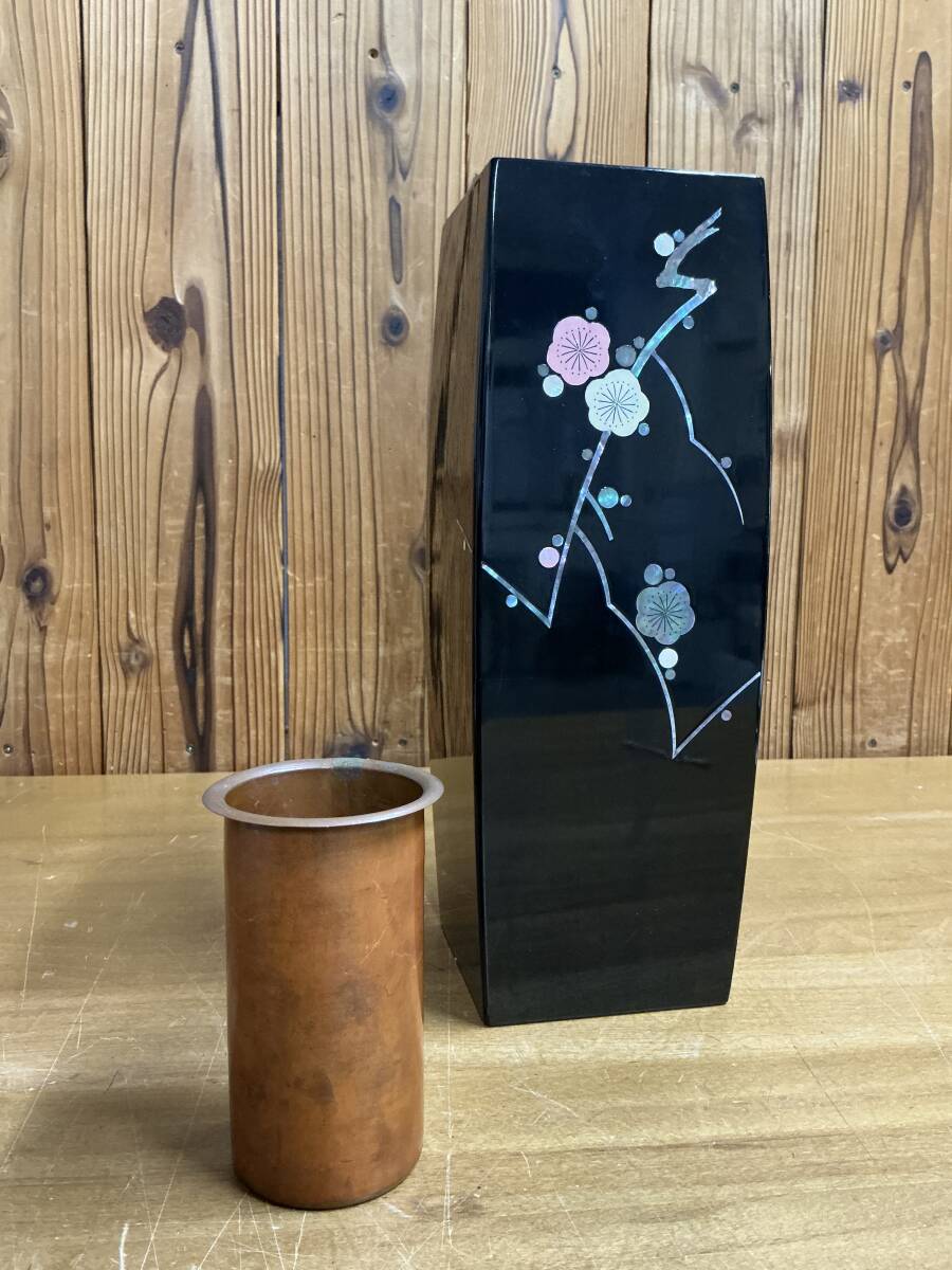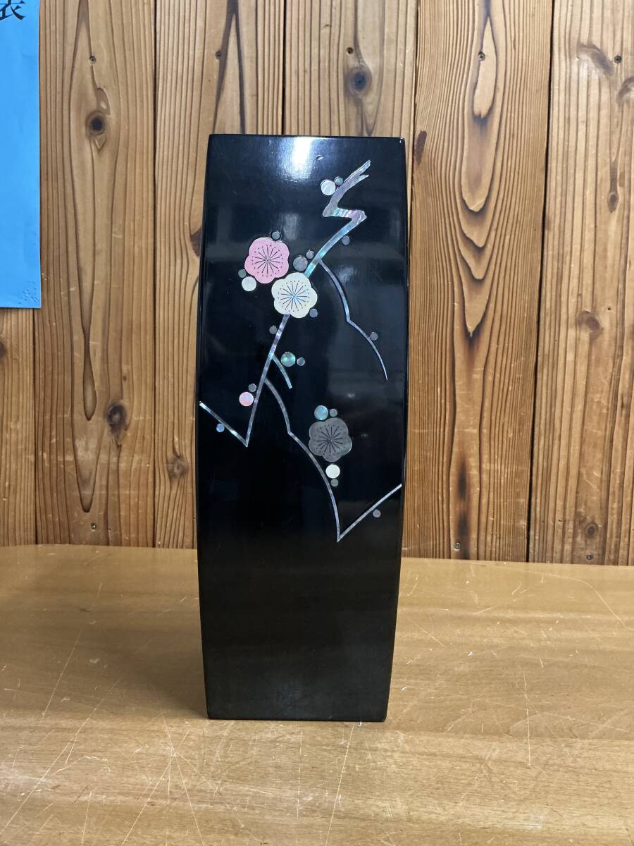 オブジェ 花器 花瓶 青貝塗(螺鈿) 高岡漆器 漆芸工芸品 古物保管品