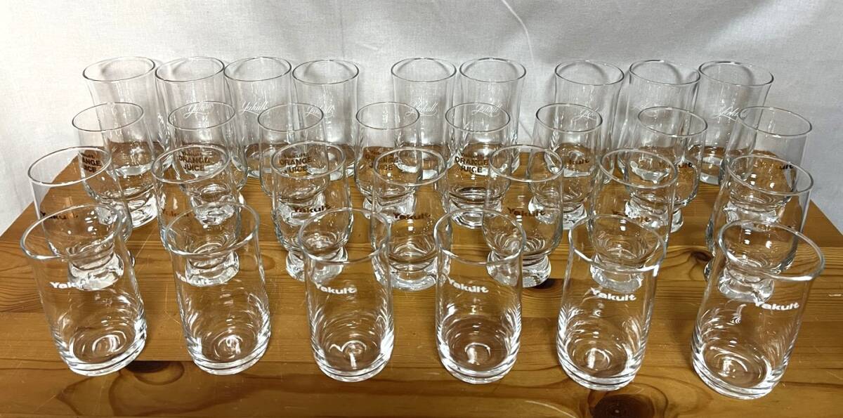 【M900】昭和レトロ/Yakult/ヤクルト/グラス/コップ/30個/まとめ/Yakultロゴ色々/未使用/長期保管品