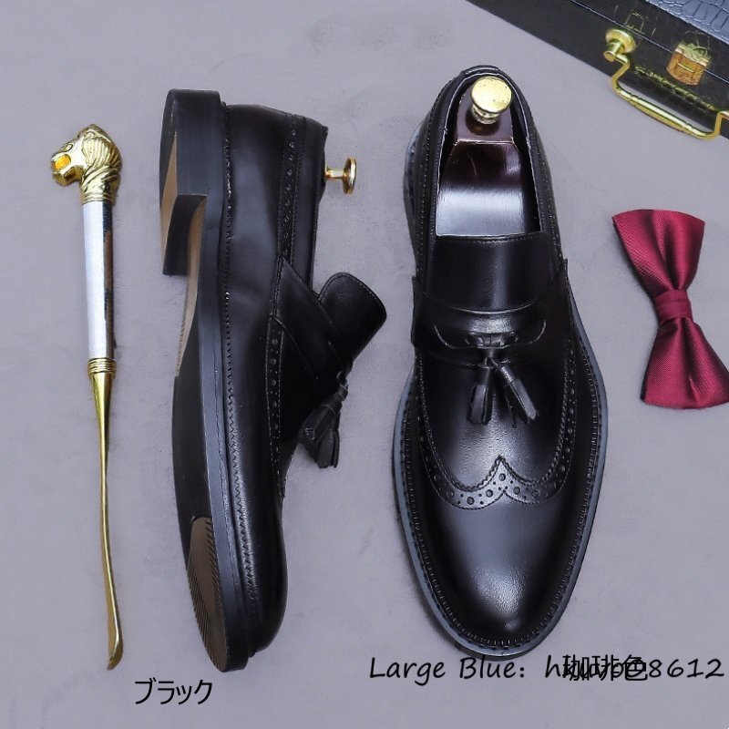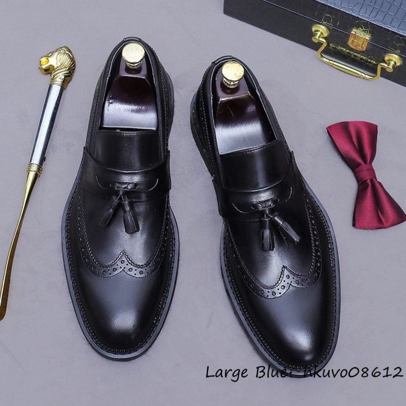 超希少◆タッセルローファー 高級牛革 レザーシューズ メンズ 職人手作り 本革 紳士靴 ビジネスシューズ フォーマル 革靴 ブラック 24.5cm