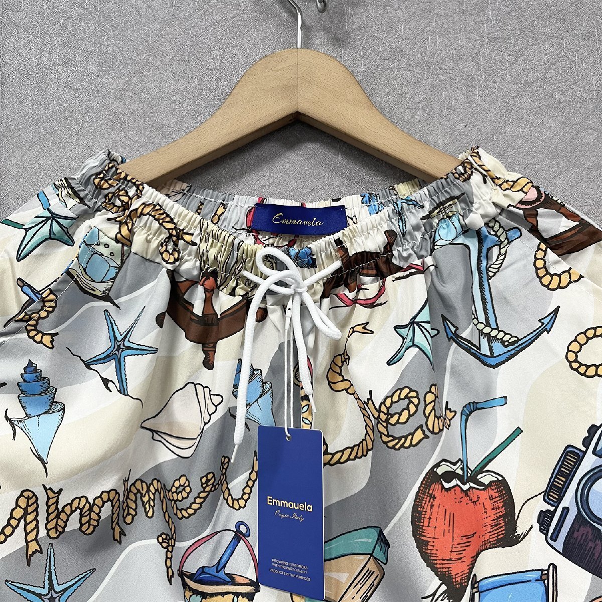 個性・ハーフパンツ 定価3万◆Emmauela・イタリア・ミラノ発◆超軽量 速乾 シルキー 総柄 短パン サーフパンツ ショート 面白い リゾート 海 L/48サイズ
