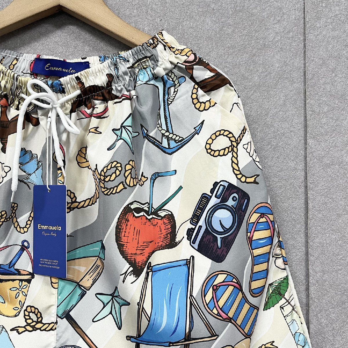 個性・ハーフパンツ 定価3万◆Emmauela・イタリア・ミラノ発◆超軽量 速乾 シルキー 総柄 サーフパンツ ショート 面白い リゾート 海 L/48
